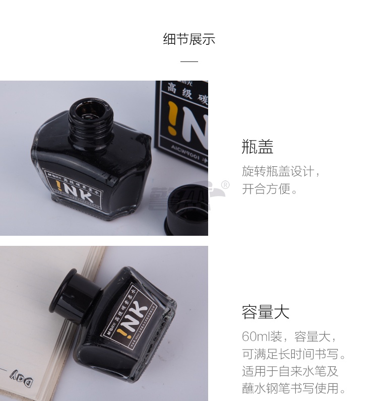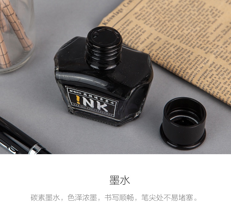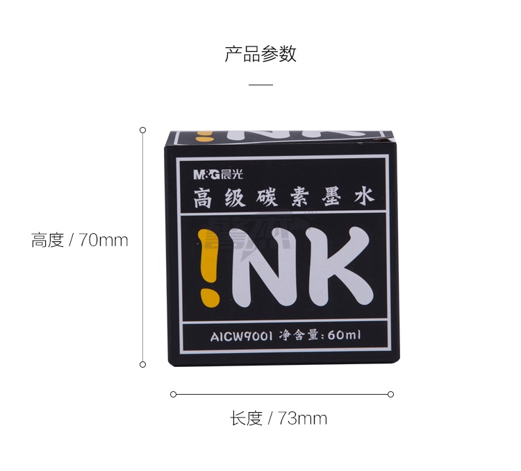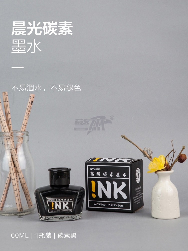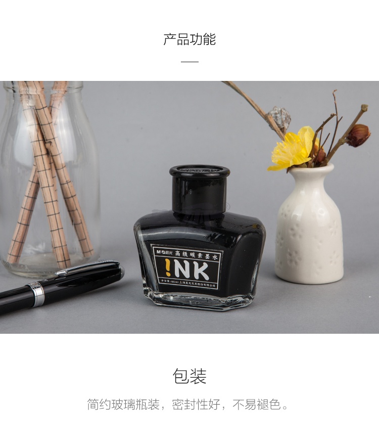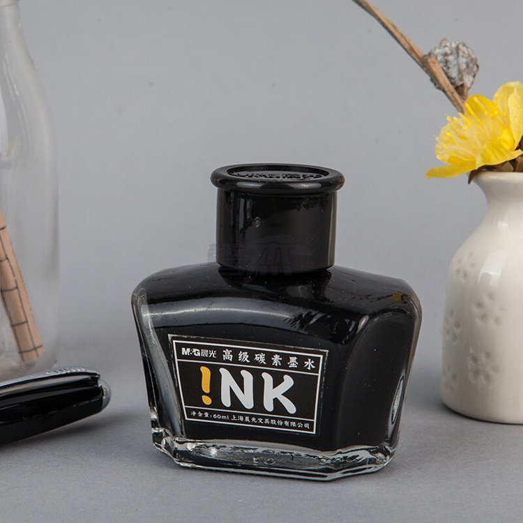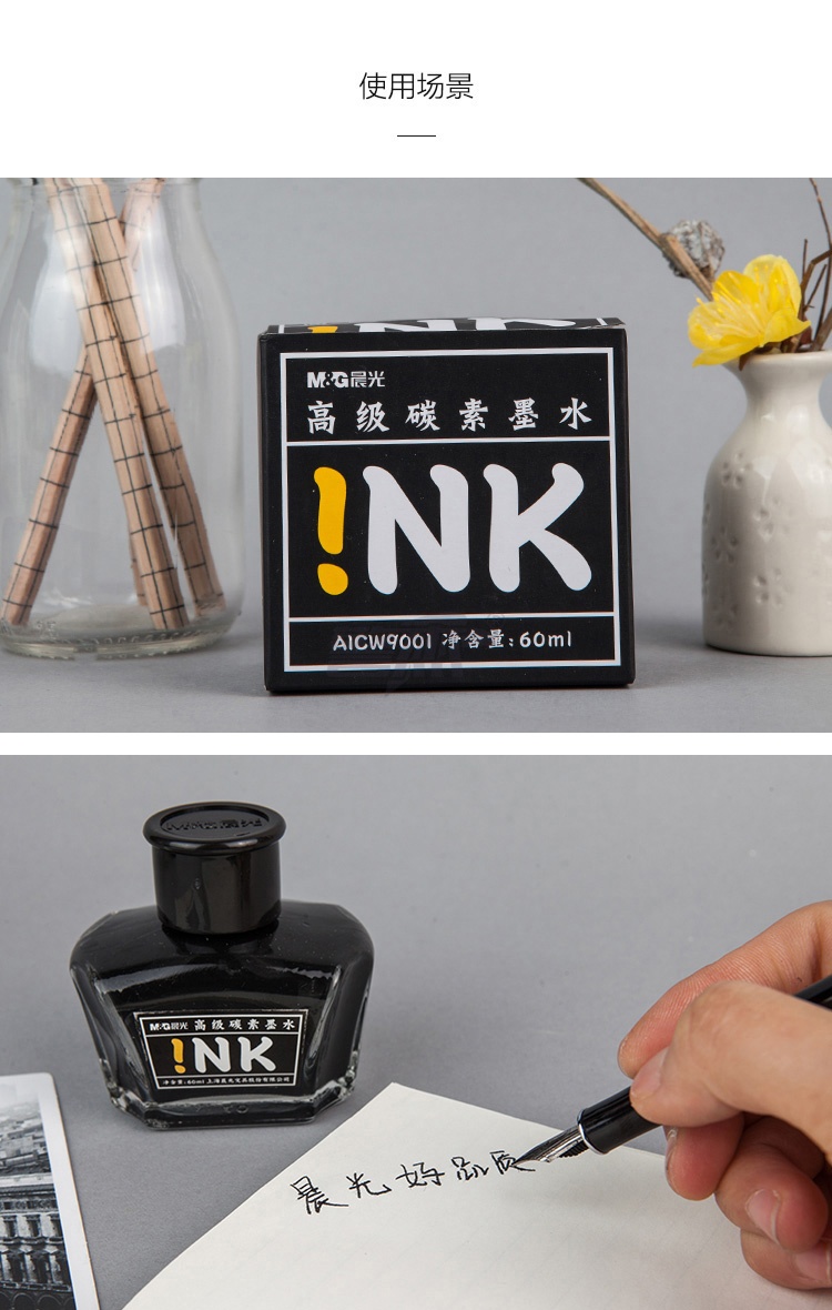 产品名称 : 晨光(M&G)文具黑色60ml高级碳素墨水 大容量不堵钢笔墨水 开学文具 单瓶装AICW9001