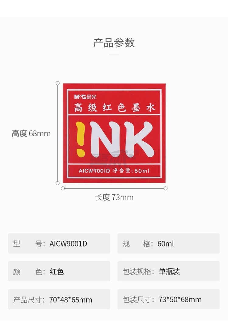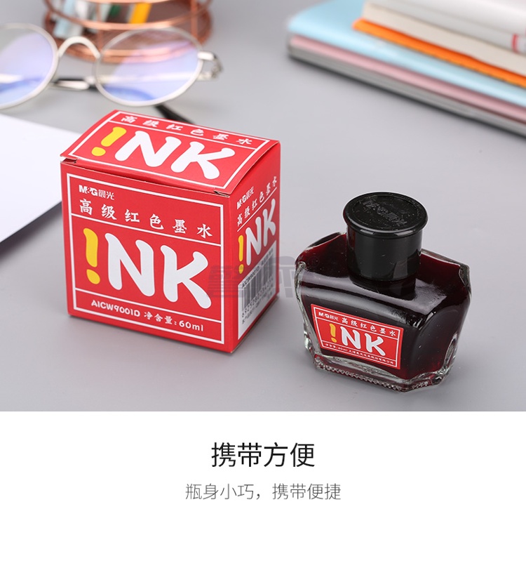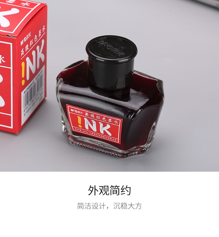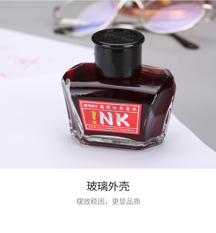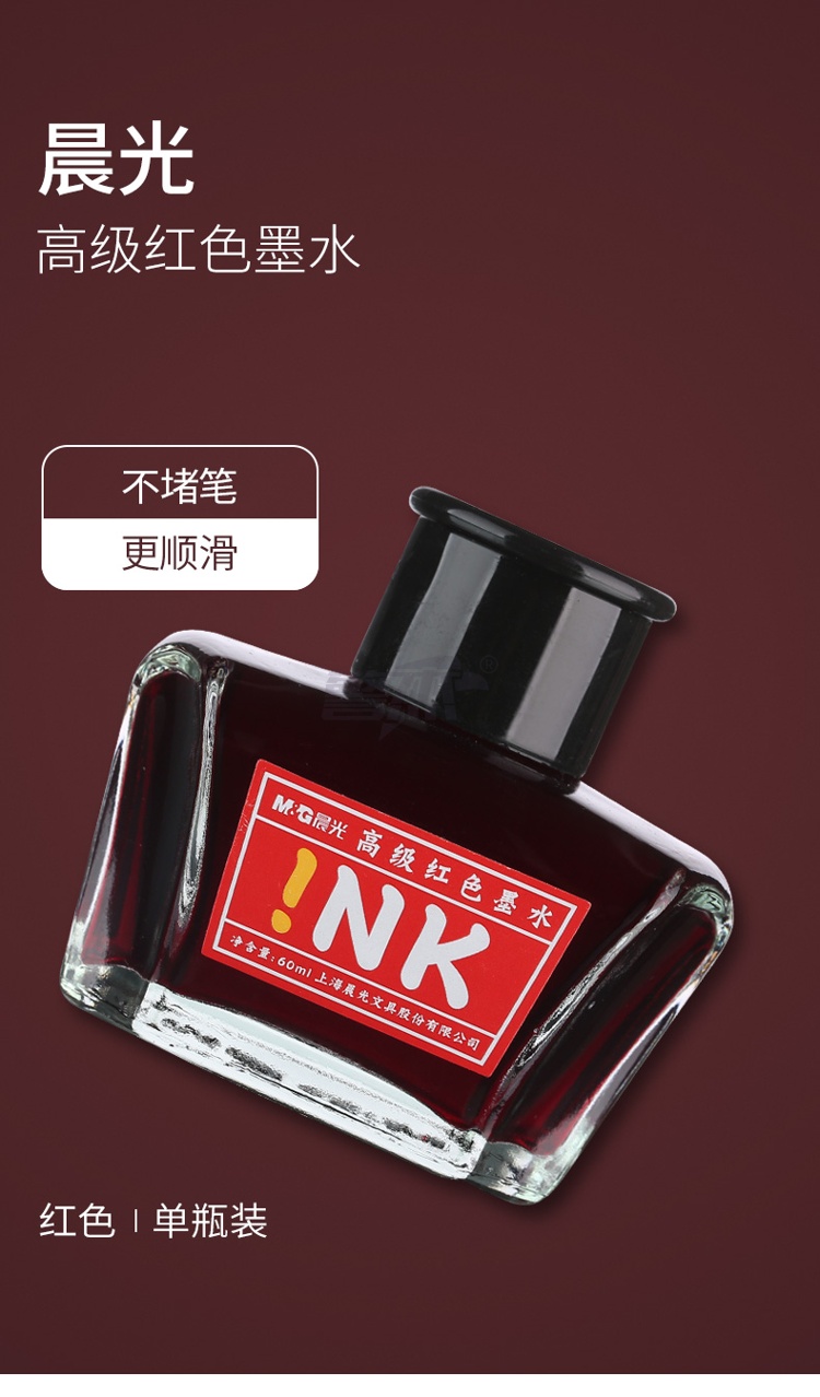 产品名称 : 晨光(M&G)文具红色60ml高级墨水 大容量不堵钢笔墨水 开学文具 单瓶装AICW9001
