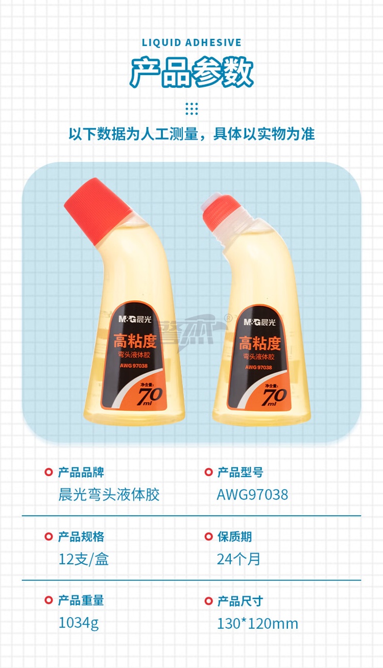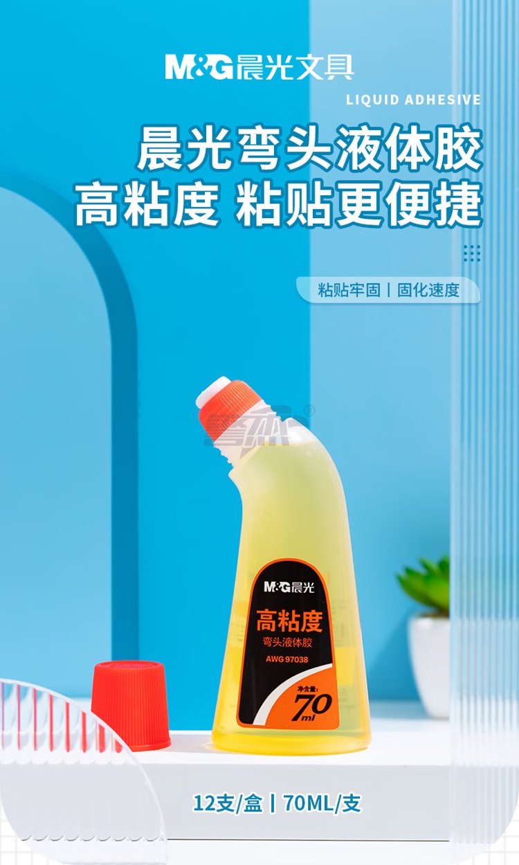产品名称 : 晨光(M&G)文具70ml高粘度弯头液体胶 学习办公通用胶水 学生手工黏胶 办公用品 12个装AWG97038