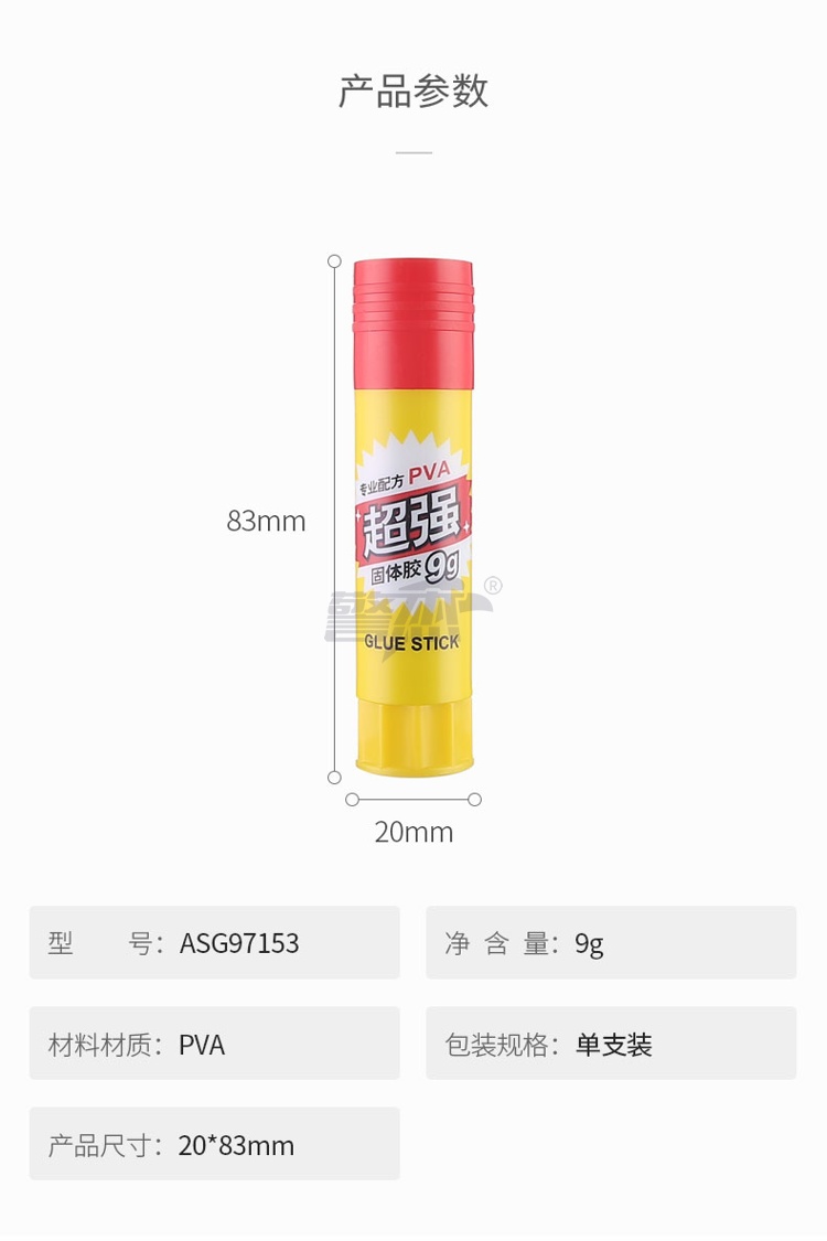 产品名称 : 晨光(M&G)文具9g强力高粘度固体胶 PVA胶棒 学生手工固体黏胶 快干耐用胶棒 办公用品 10个装ASG97153
