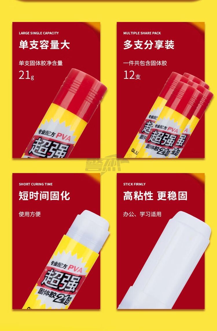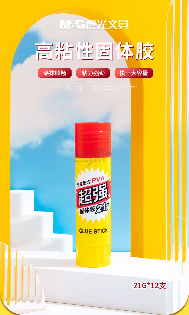 产品名称 : 晨光(M&G)文具21g强力高粘度固体胶 PVA胶棒 学生手工固体黏胶 快干耐用胶棒 办公用品 12个/盒ASG97155