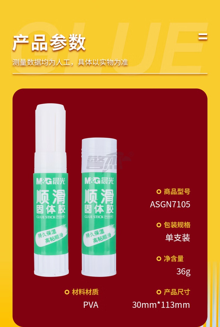 产品名称 : 晨光(M&G)文具36g高粘度顺滑PVA固体胶水/胶棒 快干耐用便携 学习生活手工胶棒 办公用品 12个装ASGN7105