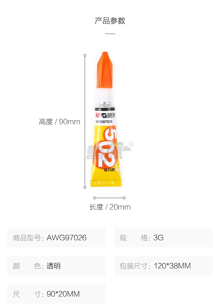 产品名称 : 晨光(M&G)文具502强力胶快速粘合无色胶水粘力持久 办公用品 3g/支 10个装AWG97026