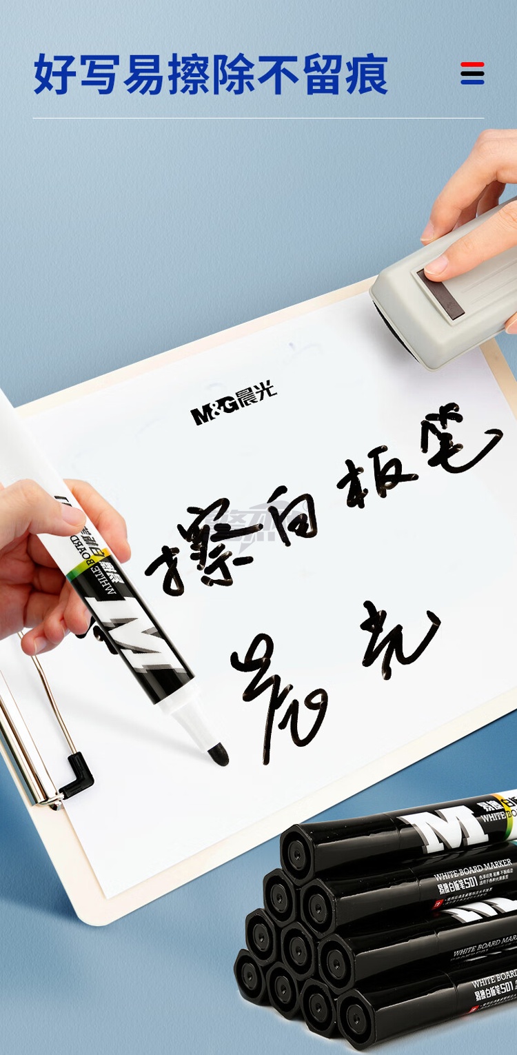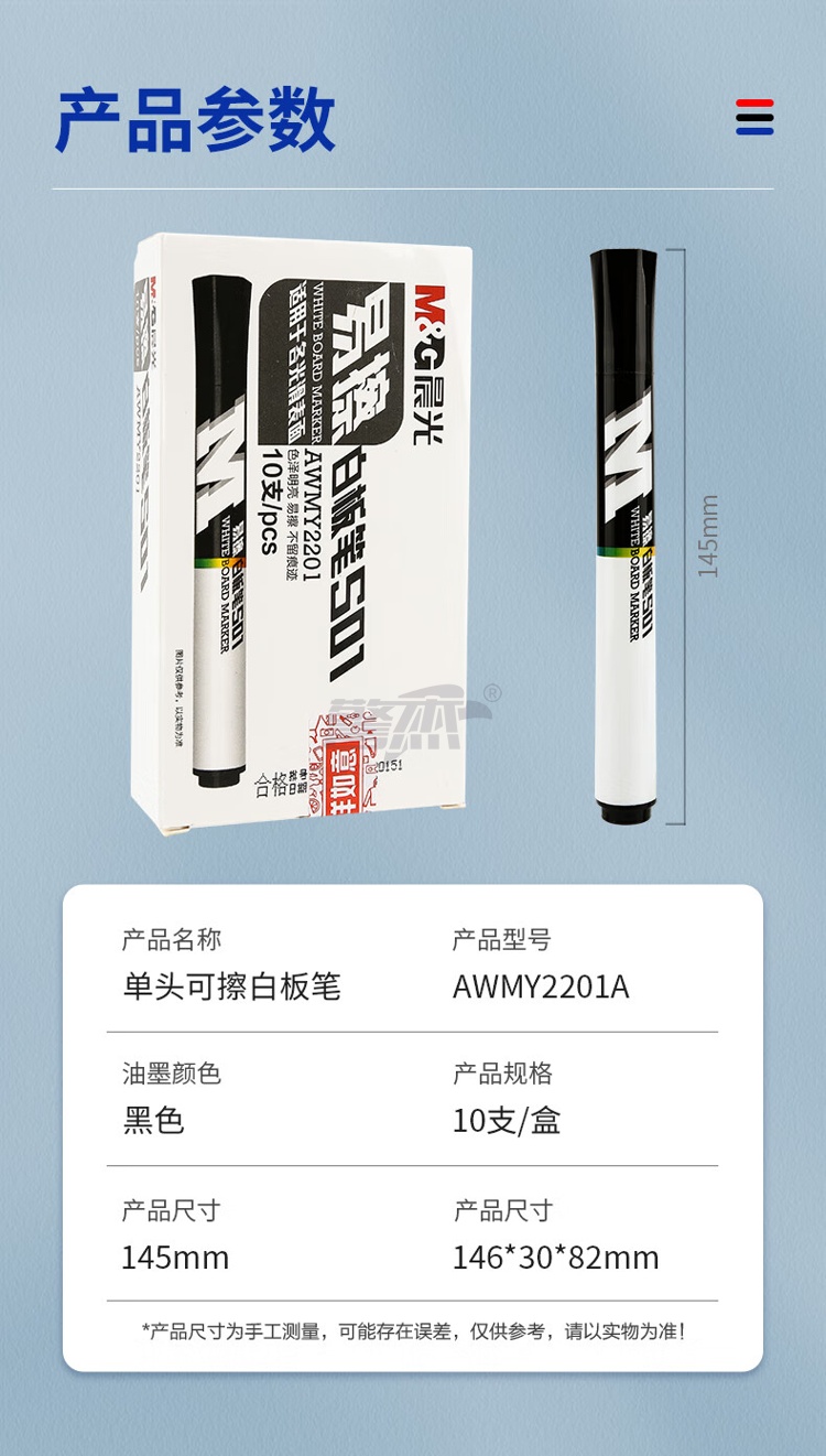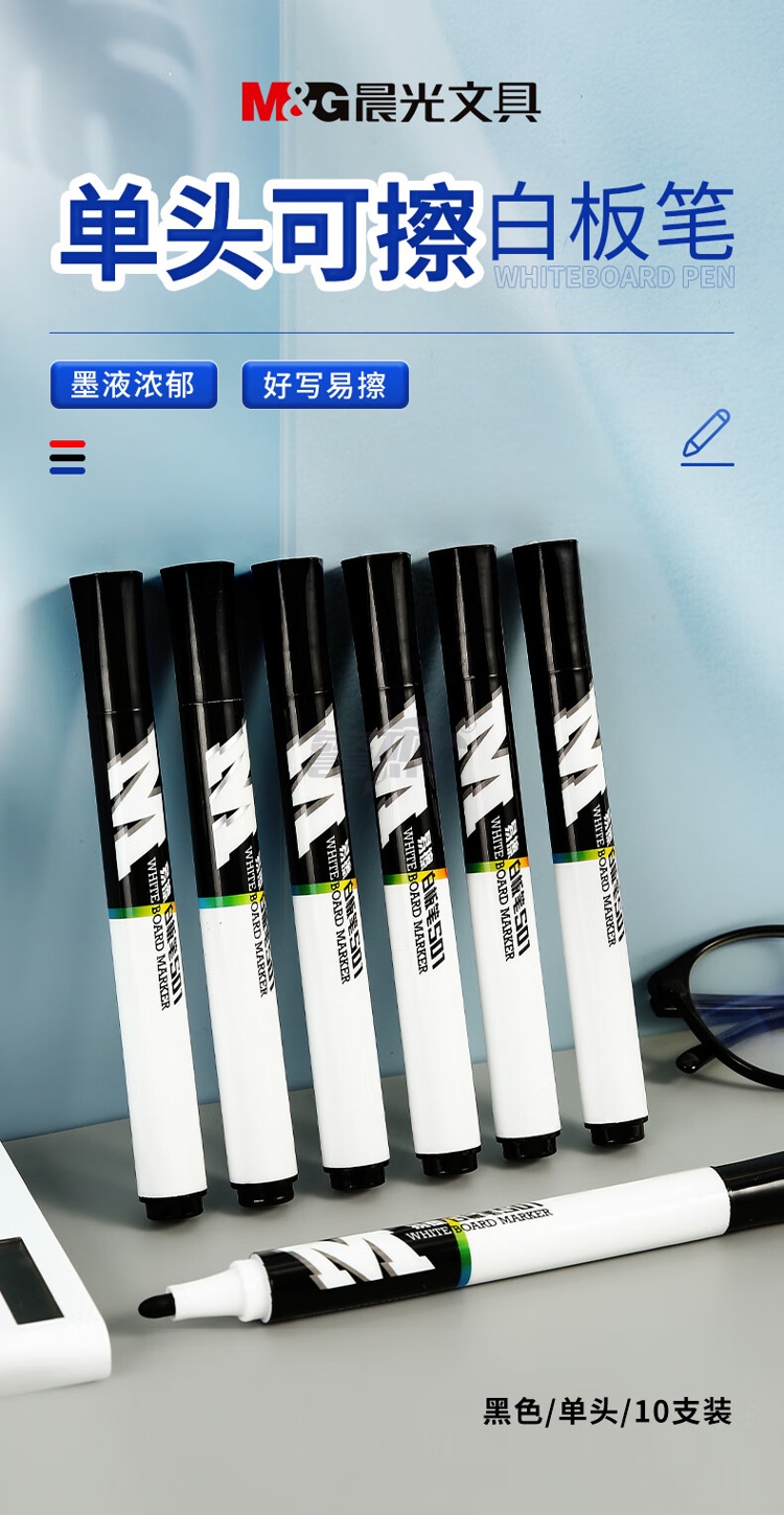 产品名称 : 晨光(M&G) 黑色S01易擦白板笔 单头办公会议笔 办公记号笔 10支/盒AWMY2201
