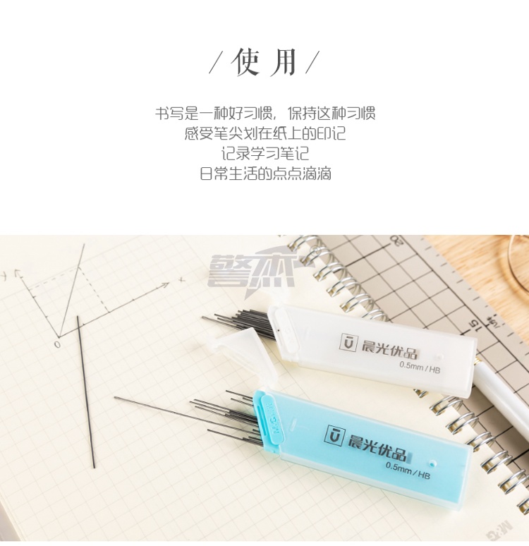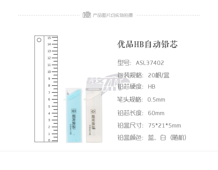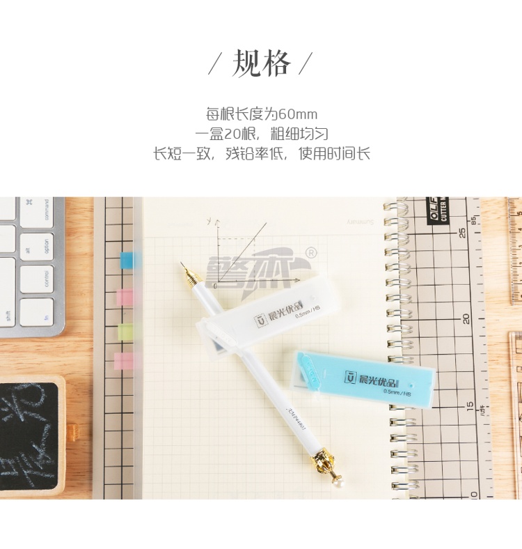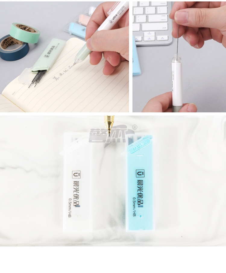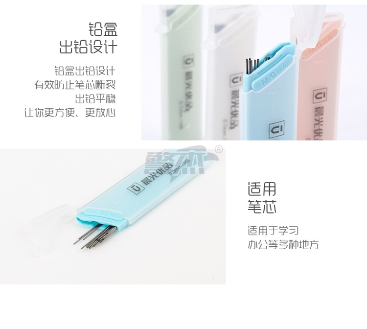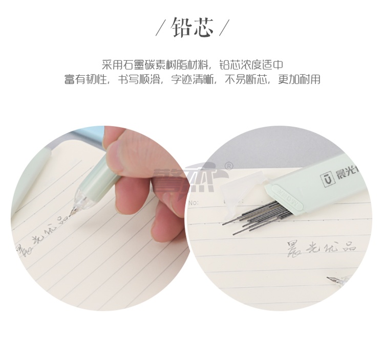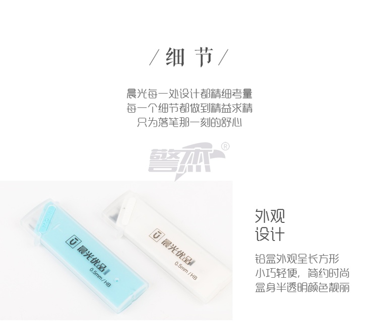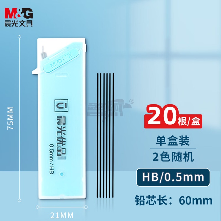产品名称 : 晨光(M&G) HB自动铅笔替芯 0.5mm树脂铅芯 优品系列 60mm*20根/盒 单个装ASL37402