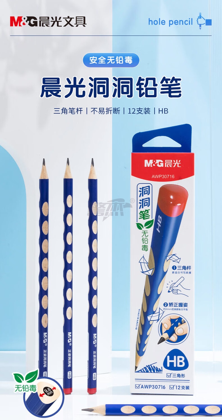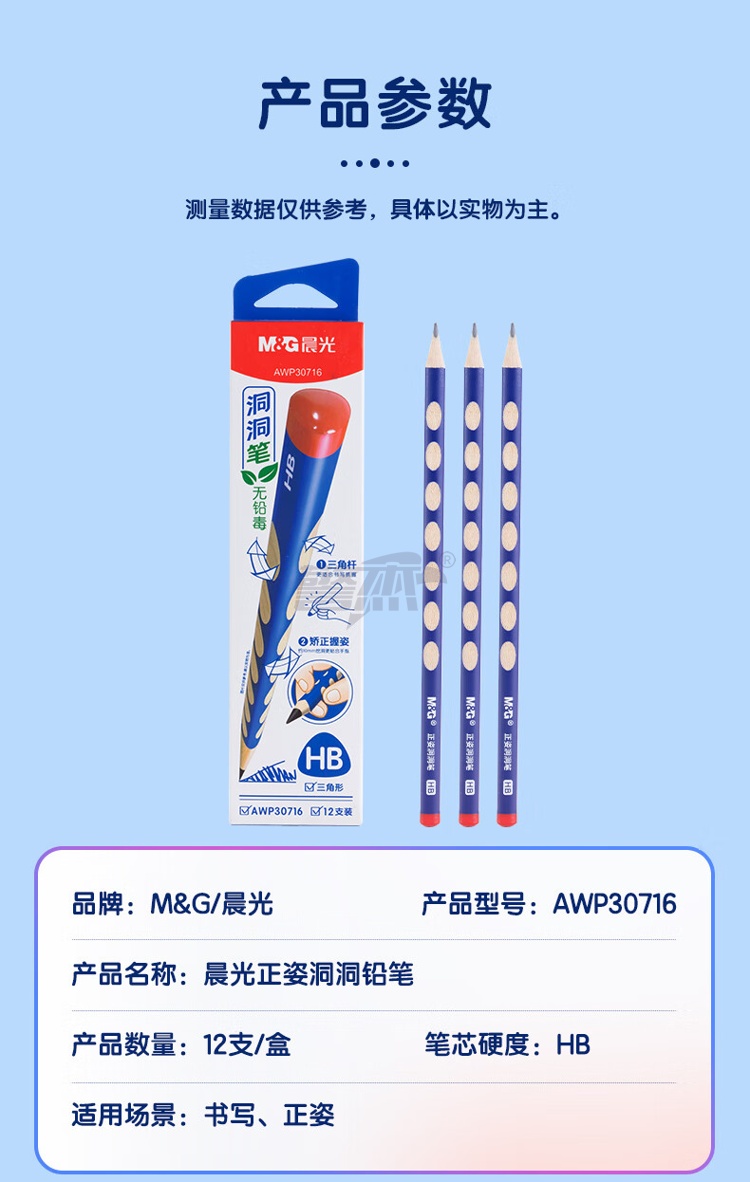 产品名称 : 晨光(M&G) 铅笔HB洞洞铅笔12支 小学生练字铅笔 儿童正姿矫姿 三角木杆铅笔 AWP30716