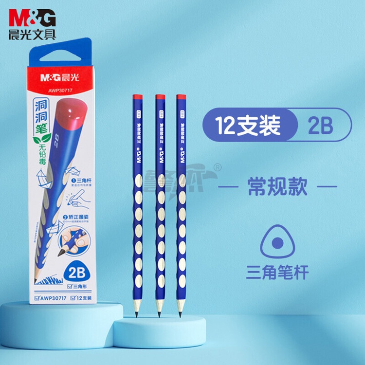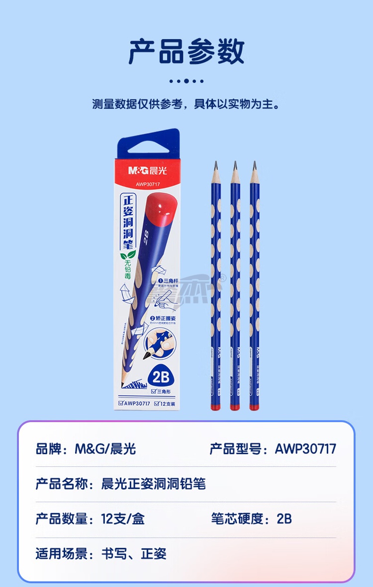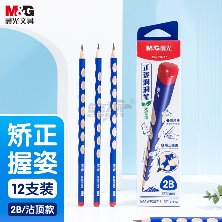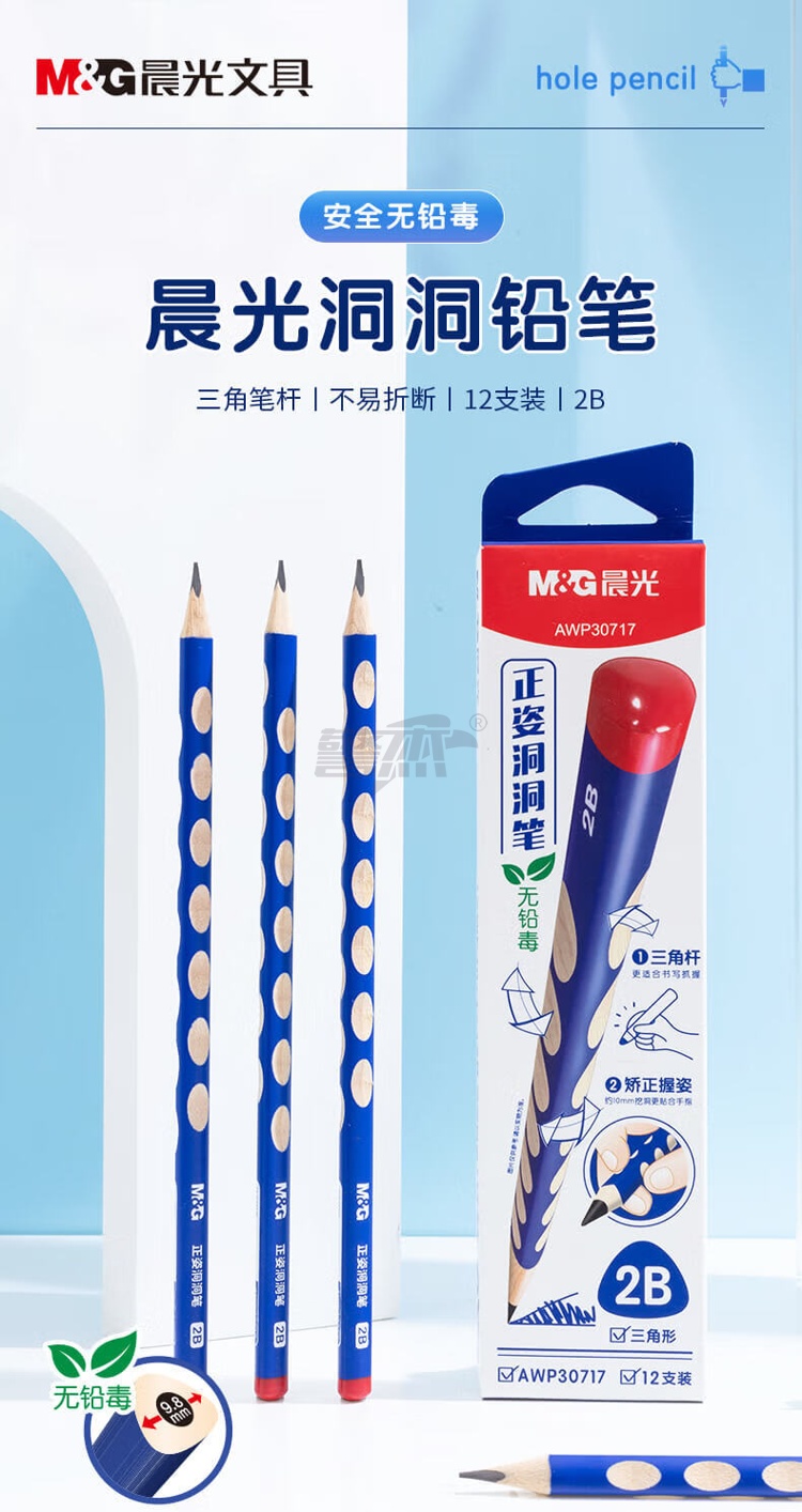 产品名称 : 晨光(M&G) 铅笔2B洞洞铅笔12支 小学生练字铅笔 儿童正姿矫姿 沾顶易抓握AWP30717
