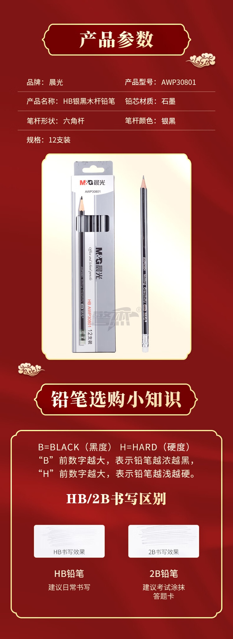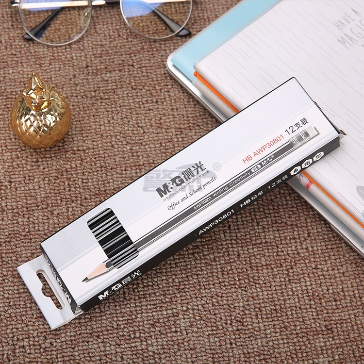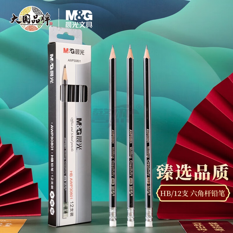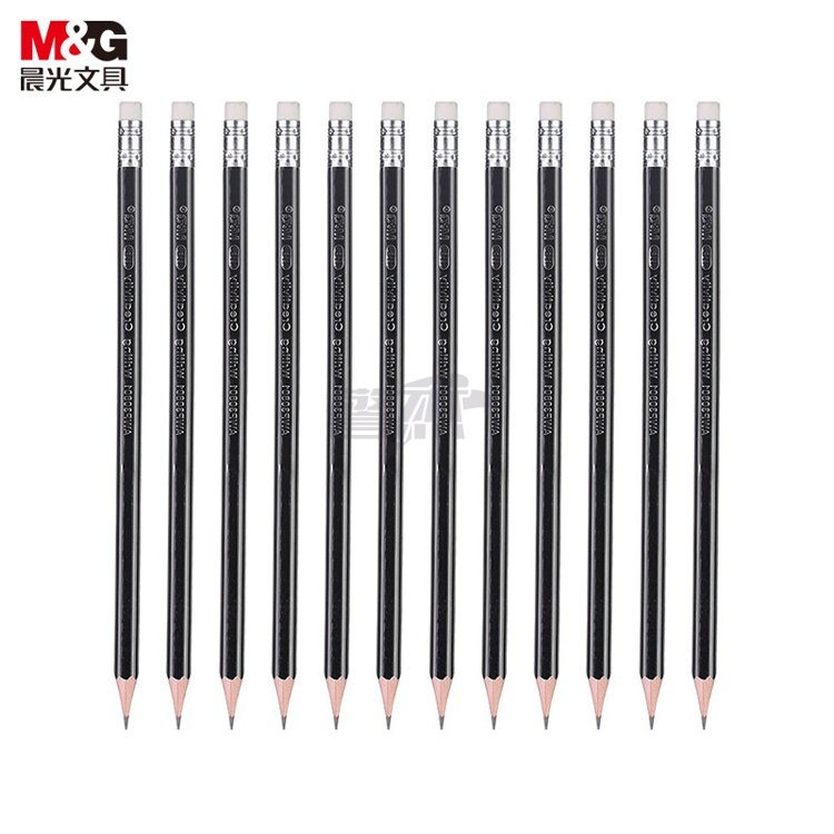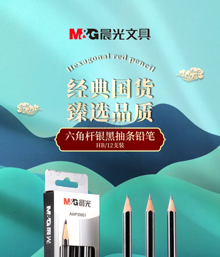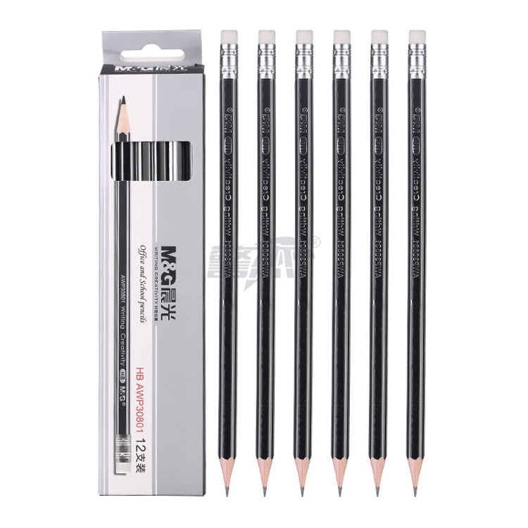 产品名称 : 晨光(M&G) HB铅笔12支 银黑抽条六角木杆铅笔 学生书写美术素描绘图木质铅笔带橡皮头AWP30801