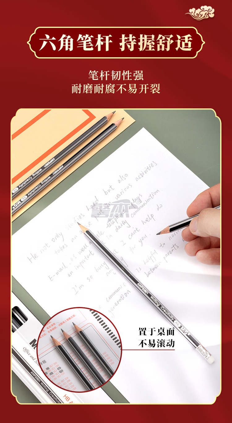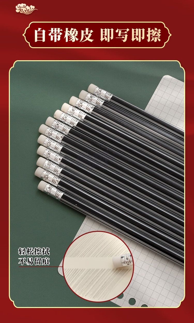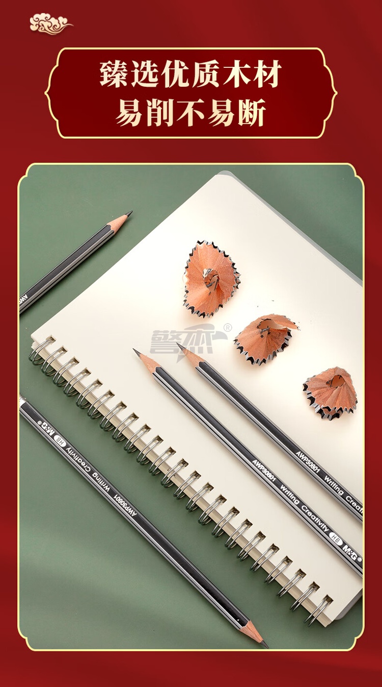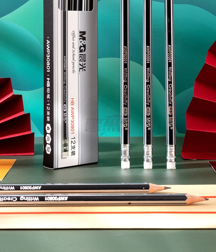 产品名称 : 晨光(M&G) HB铅笔12支 银黑抽条六角木杆铅笔 学生书写美术素描绘图木质铅笔带橡皮头AWP30801