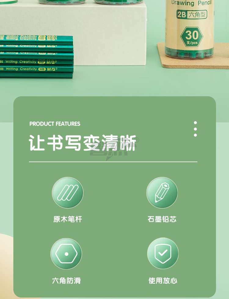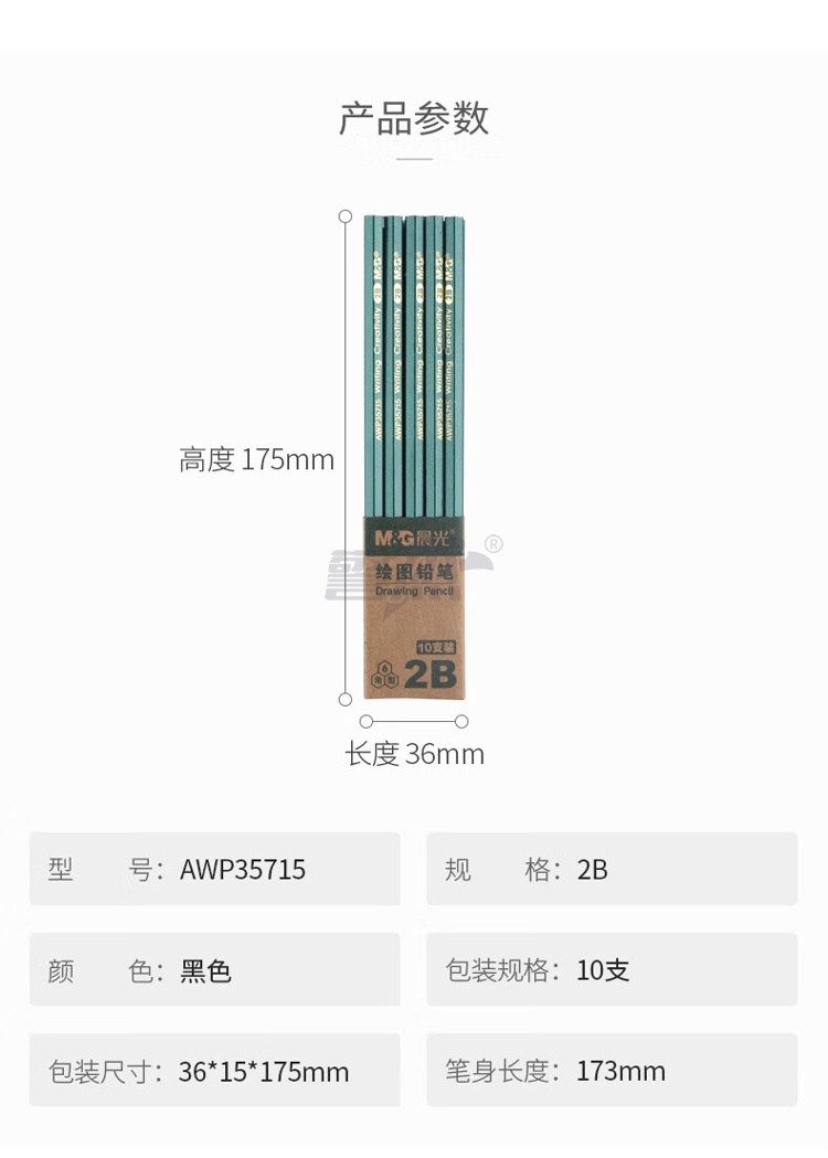 产品名称 : 晨光(M&G) 2B铅笔10支 经典绿杆六角木杆铅笔 学生考试涂卡书写美术素描绘图木质铅笔AWP35715