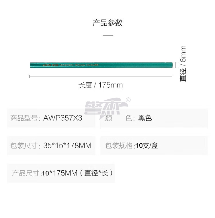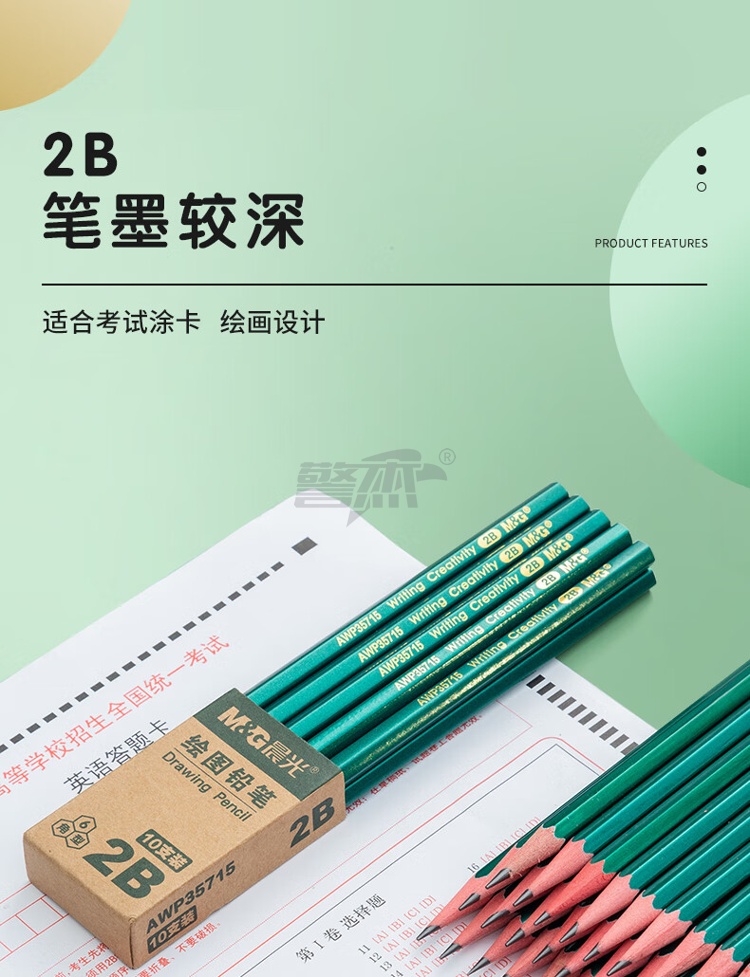 产品名称 : 晨光(M&G) HB铅笔10支 经典绿杆六角木杆铅笔 学生书写美术素描绘图木质铅笔AWP357X3