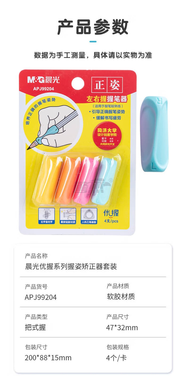 产品名称 : 晨光(M&G) 左右握握笔器 幼儿园小学生握姿矫正器 优握正姿矫正器套装 开学文具 4个装APJ99204