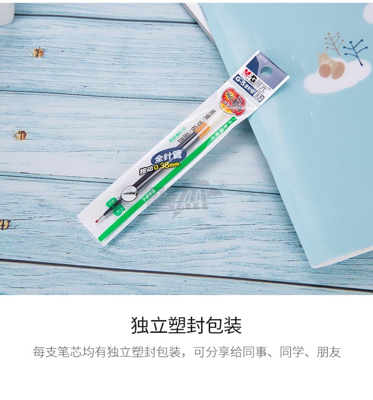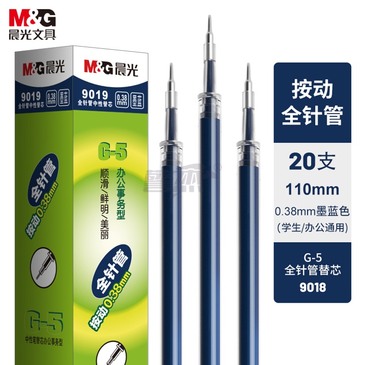 产品名称 : 晨光(M&G) 墨蓝色0.38mm中性笔替芯(蓝黑色) G-5全针管水笔替换芯 20支/盒9019B1