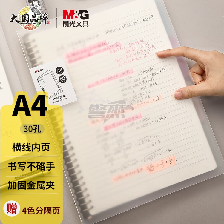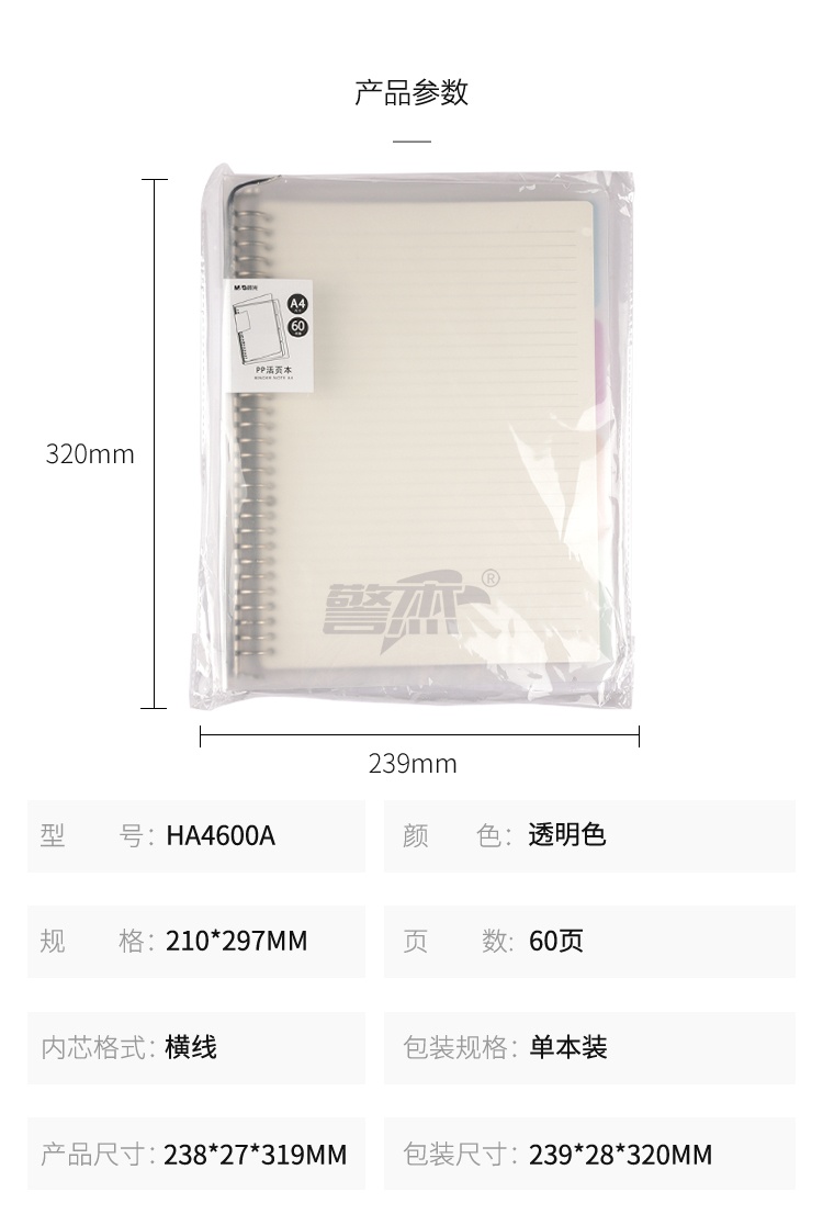 产品名称 : 晨光(M&G) A4/60张横线活页本活力夹(铁夹) PP封面学习本 线圈本 单本装HA4600A