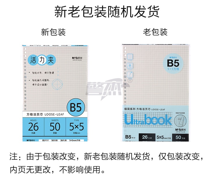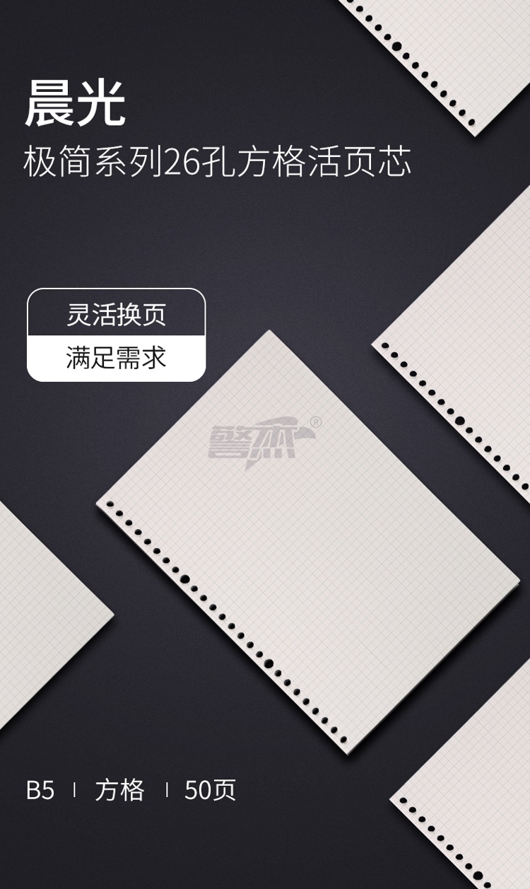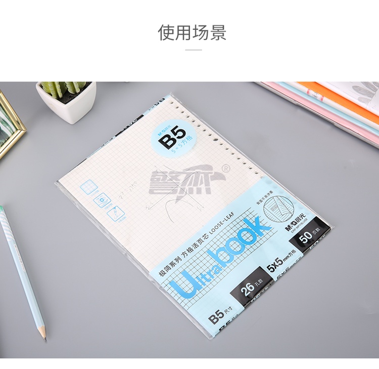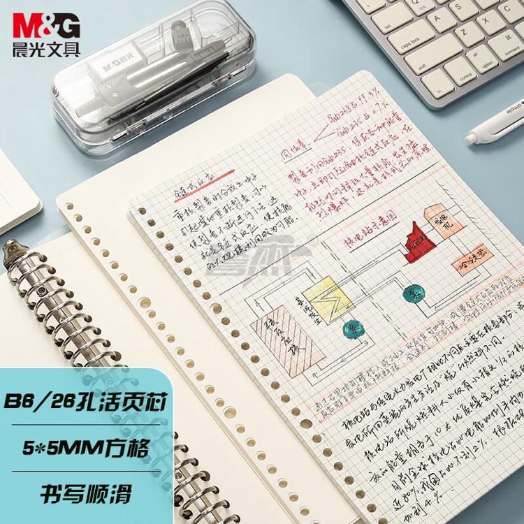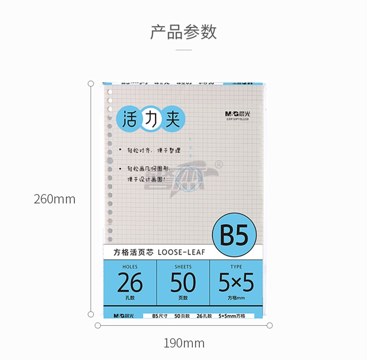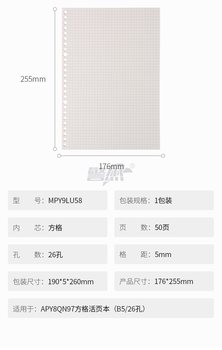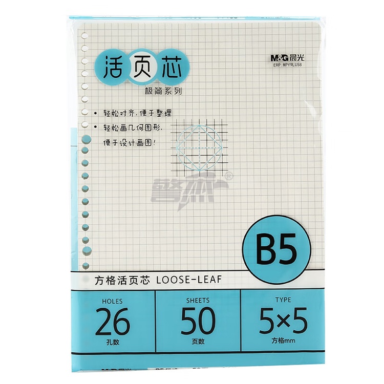 产品名称 : 晨光(M&G)文具B5/26孔米色活页本替芯 记事本笔记本子5*5mm方格 50张/包MPY9LU58