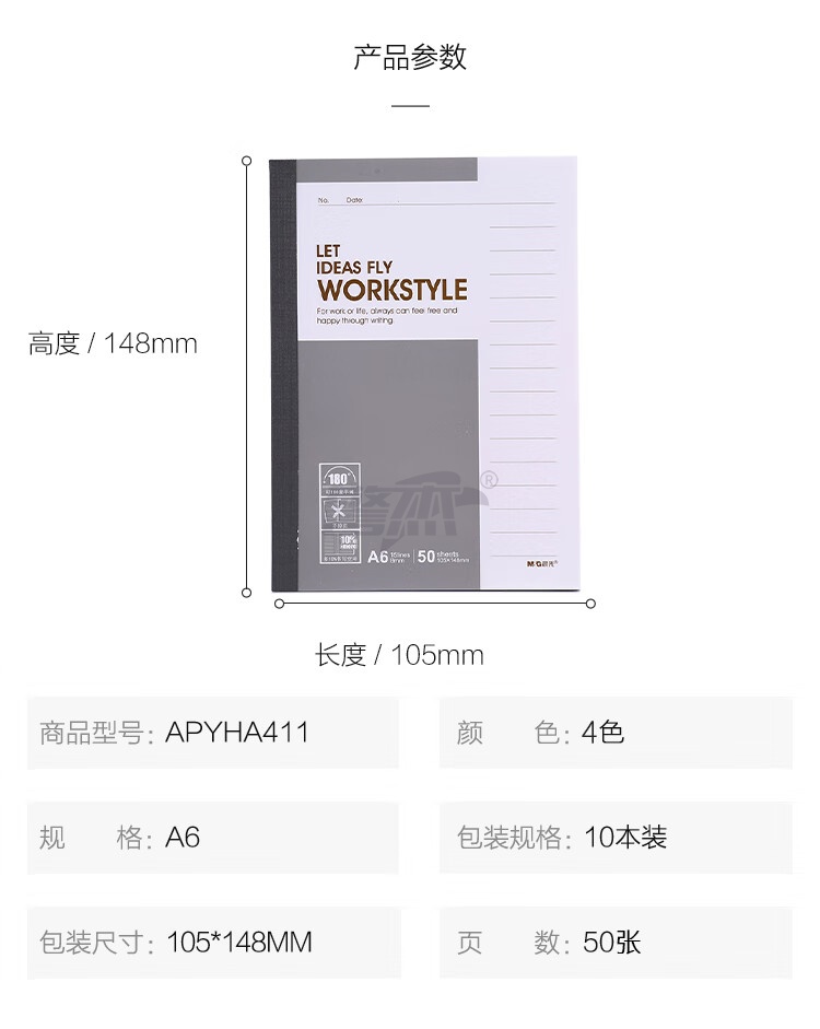 产品名称 : 晨光(M&G) A6/50张办公笔记本子 口袋便携记事本无线装订本 10本装APYHA411