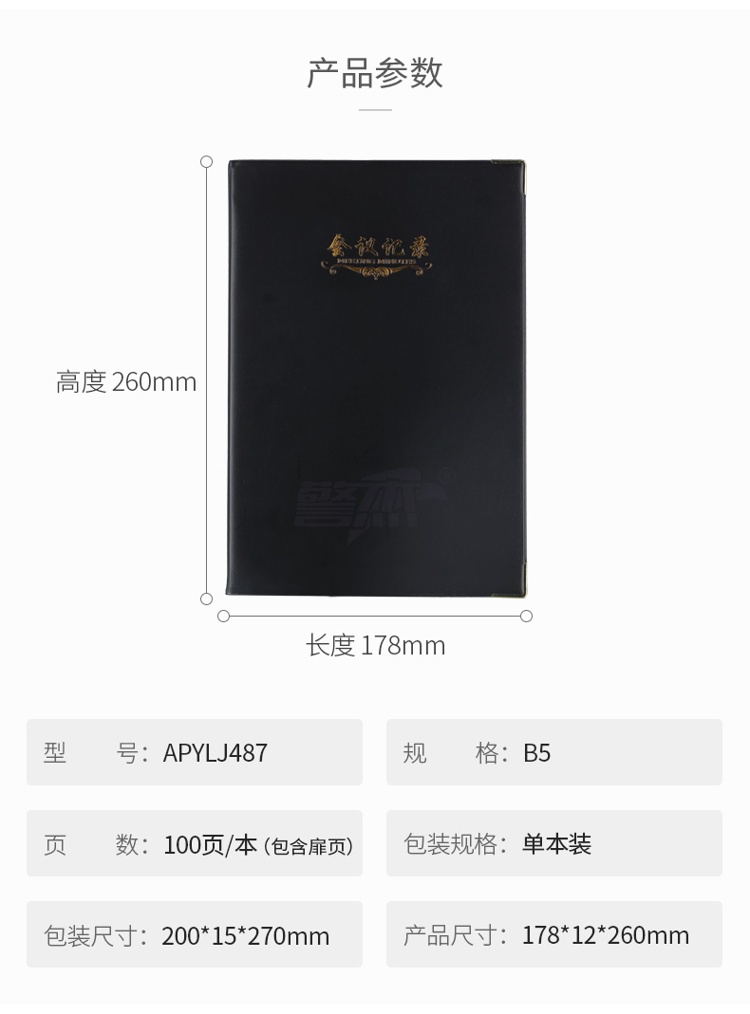 产品名称 : 晨光(M&G) B5/100张办公记事本 笔记本子 黑色会议记录本皮面本 皮革本商务本 单本装APYLJ487