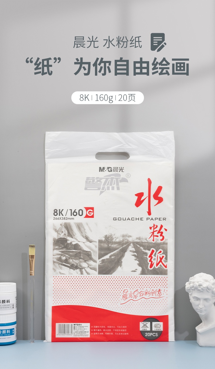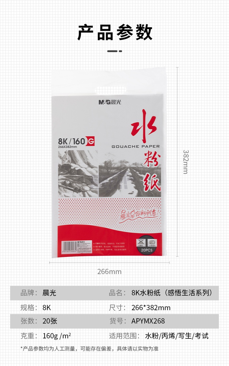 产品名称 : 晨光(M&G) 8K/160g水粉纸 专业美术绘画纸素描纸 感悟人生系列写生纸 20页/包APYMX268考试用品