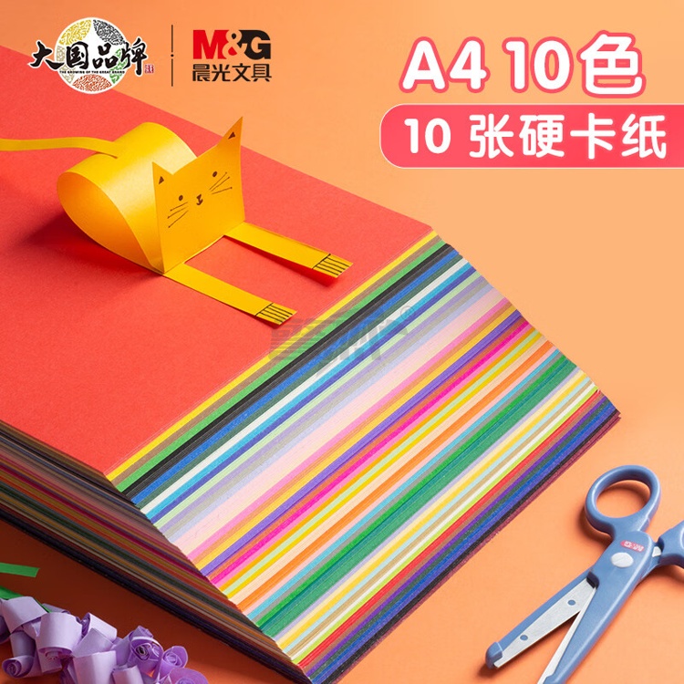 产品名称 : 晨光(M&G) 彩色卡纸 A4/10色 剪纸绘画美工纸 儿童幼儿园小学生手工材料 加厚硬纸板 10页/包APYNZH20