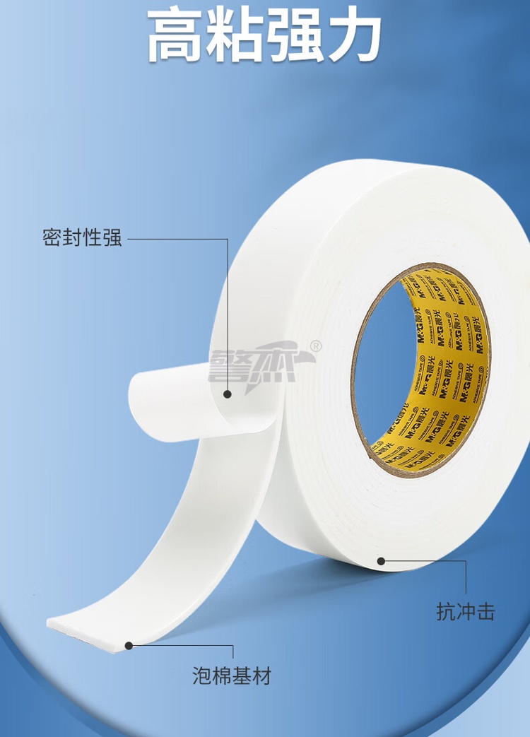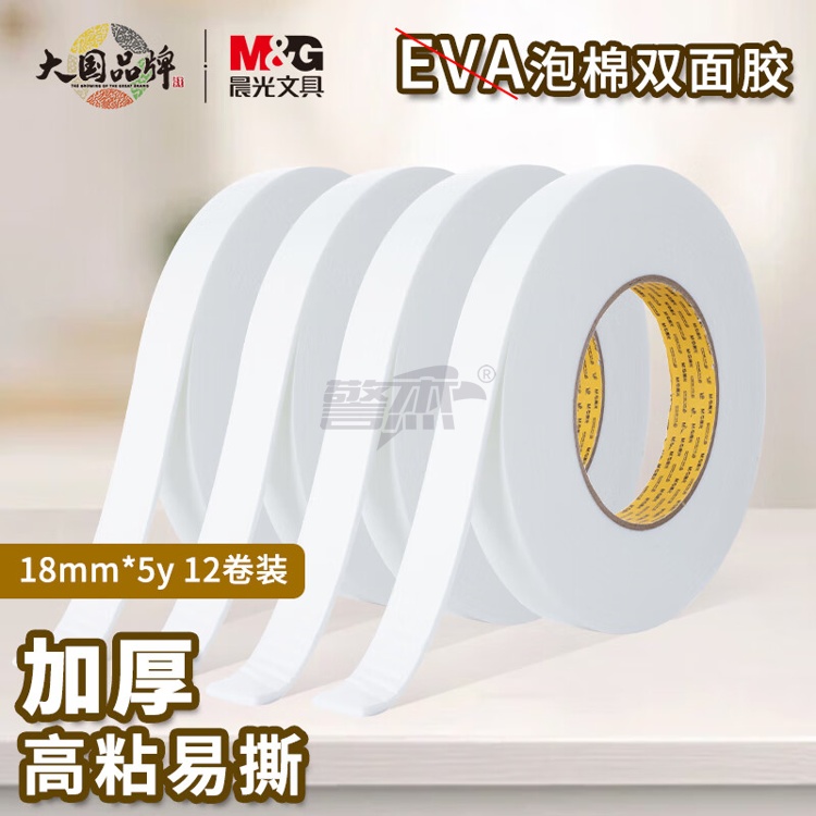 产品名称 : 晨光(M&G)文具强力高粘度EVA泡棉双面胶带 18mm*5y(4.57m/卷) 办公用品 12卷装AJD957N1