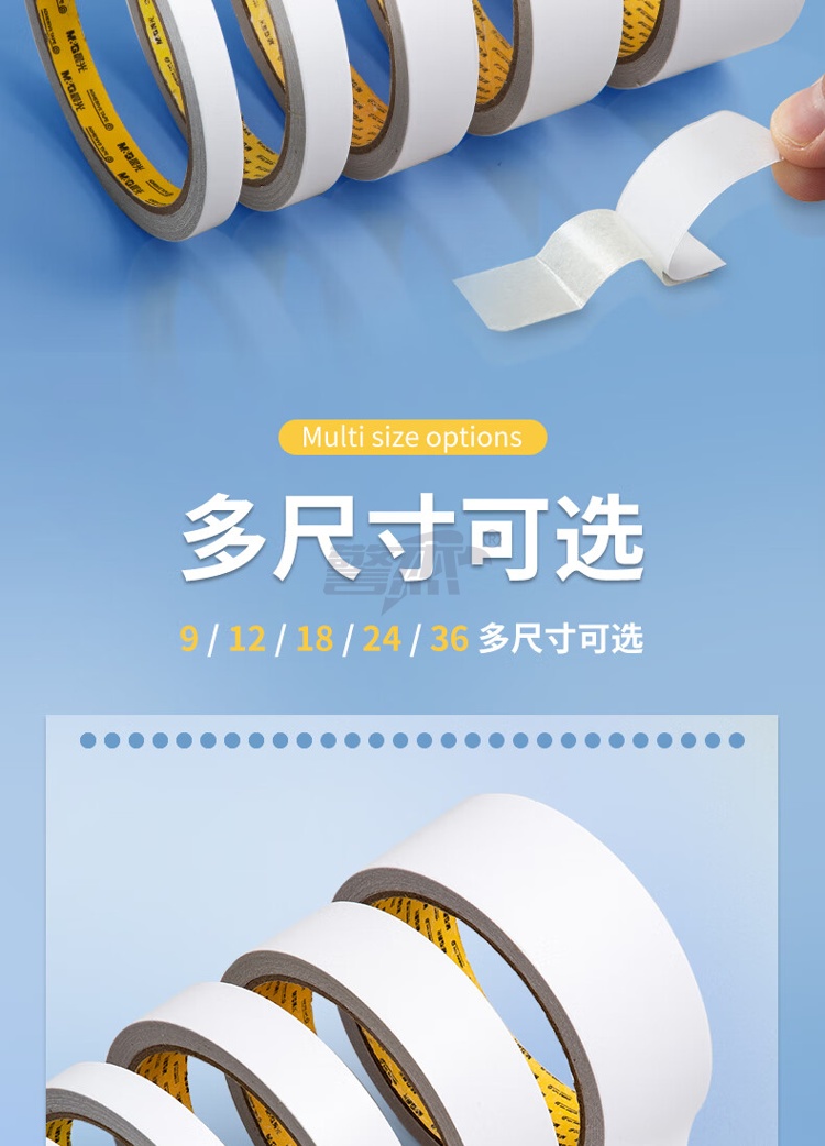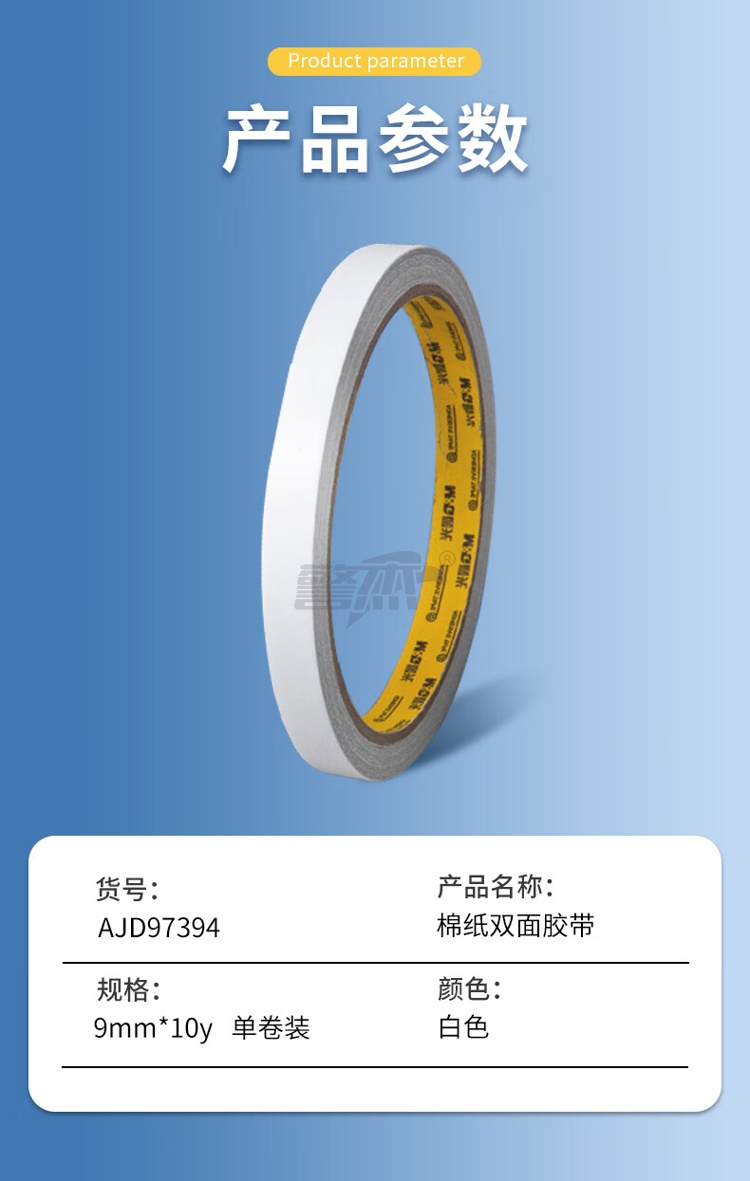 产品名称 : 晨光(M&G)文具高粘性棉纸双面胶带9mm*10y(9.1m/装) 办公用品 10卷装AJD97394