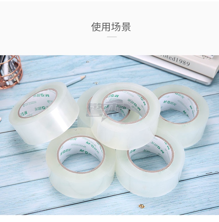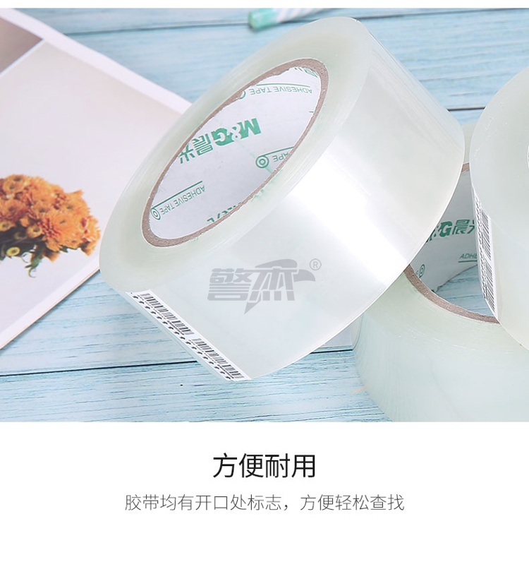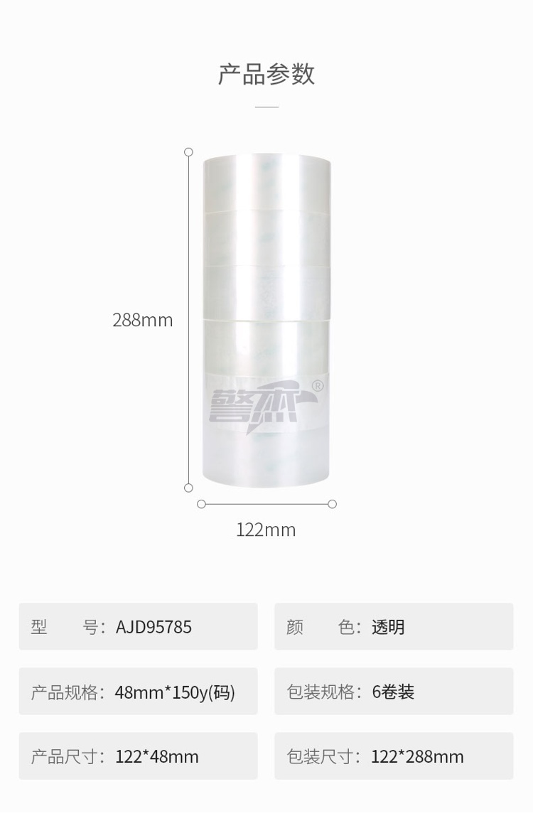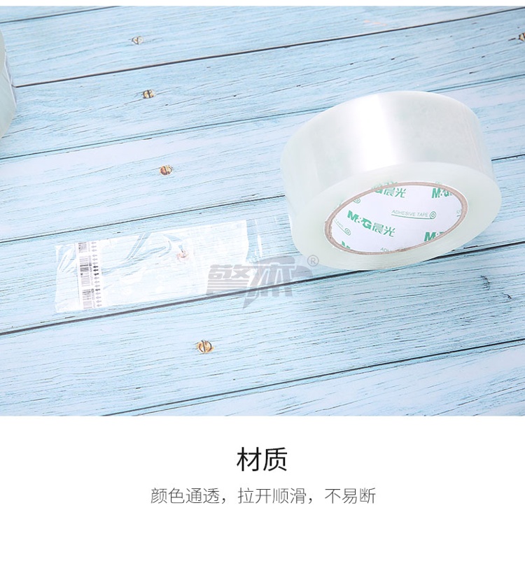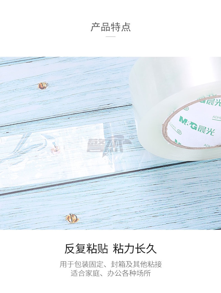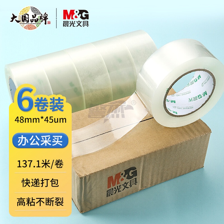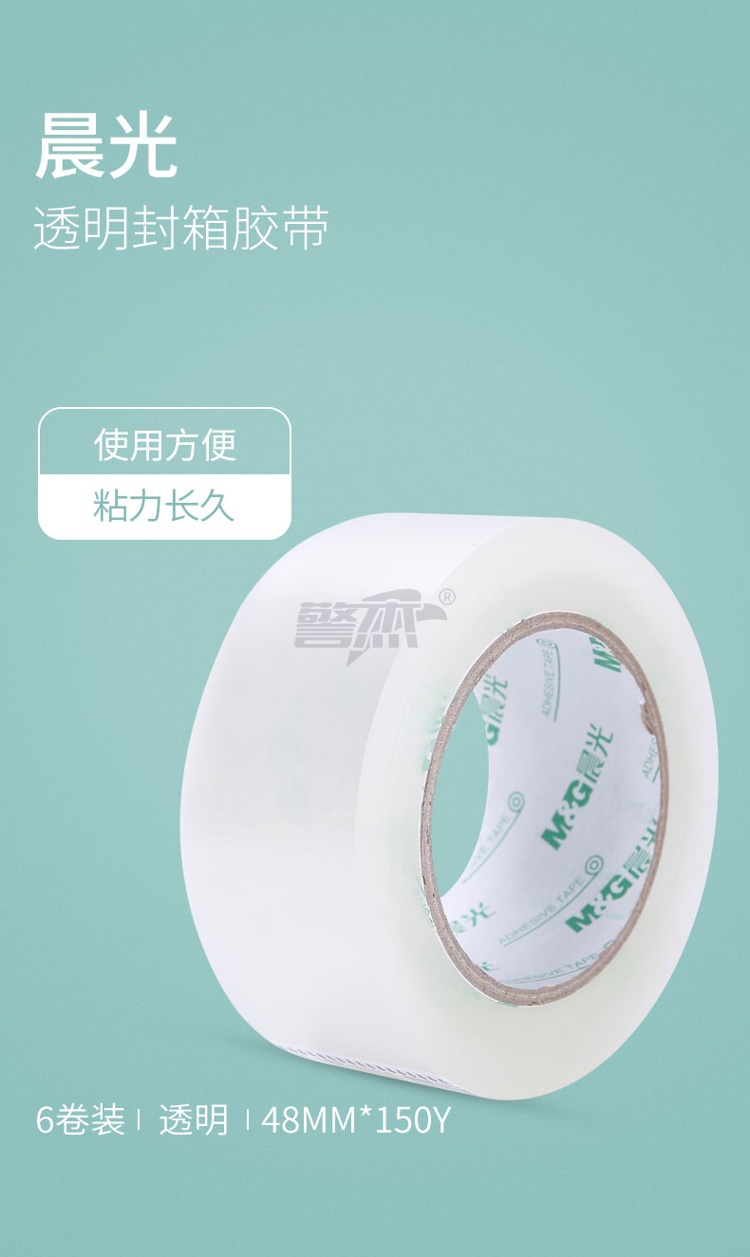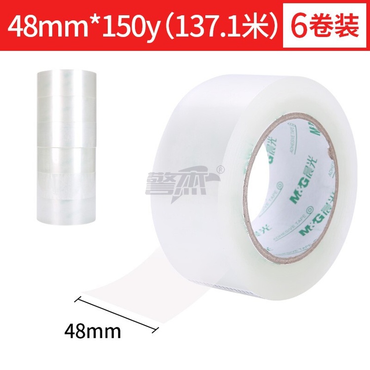 产品名称 : 晨光(M&G)文具透明封箱胶带打包胶带 48mm*150y*45um (137.1米/卷) 6卷/筒AJD95785