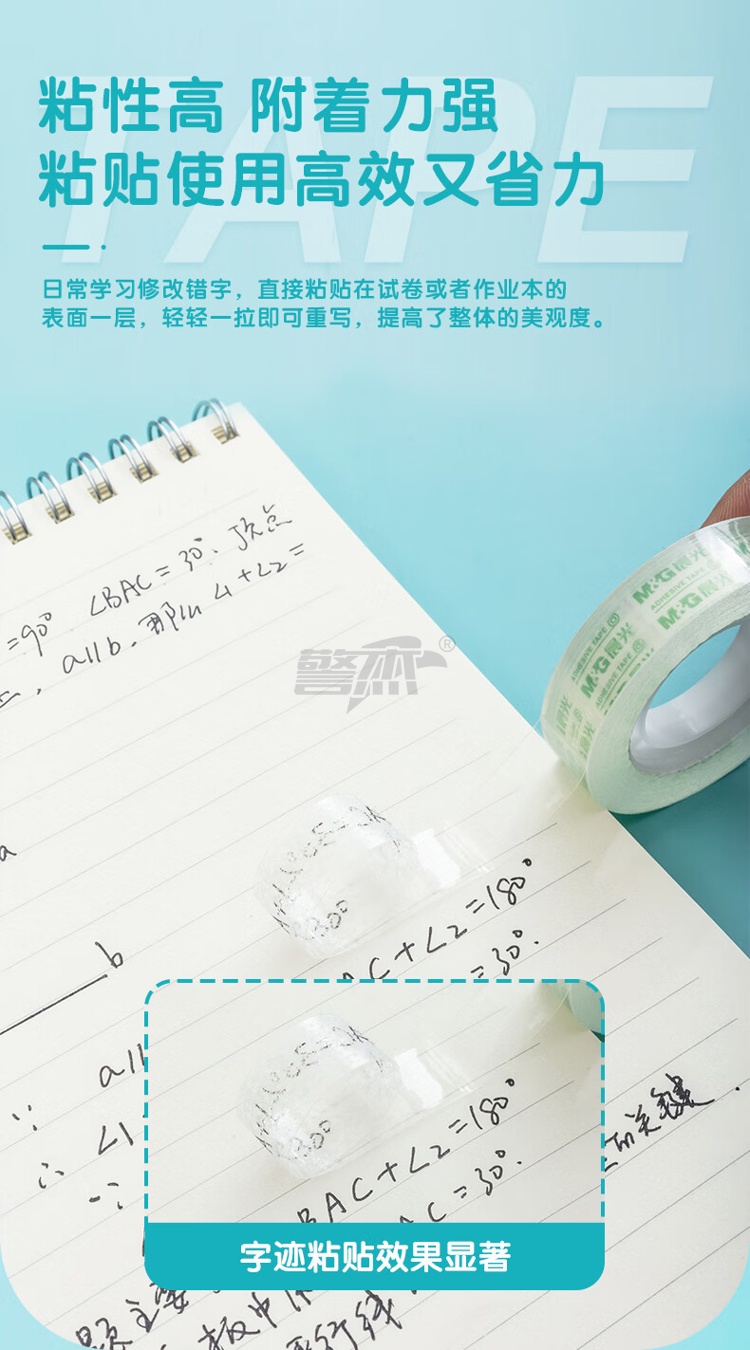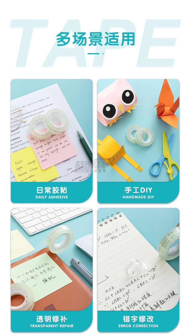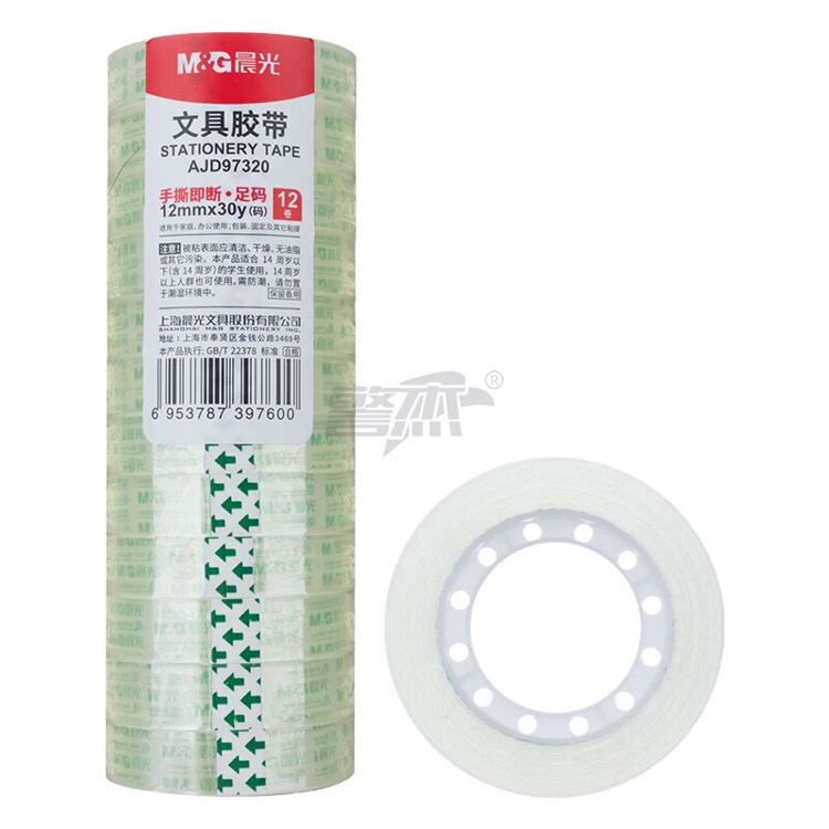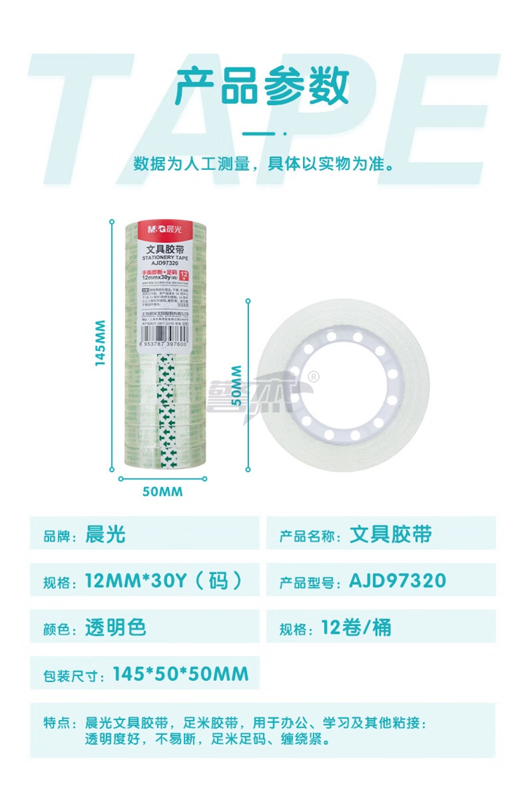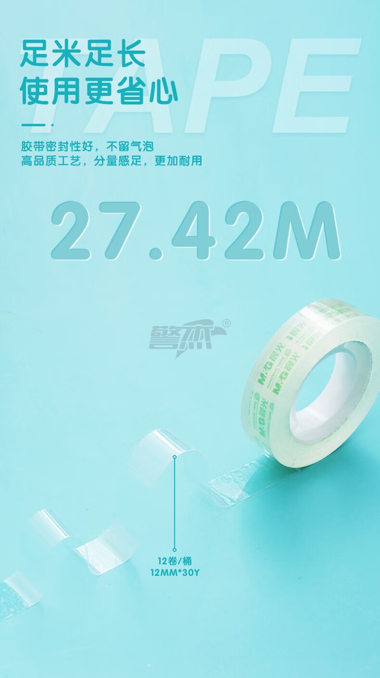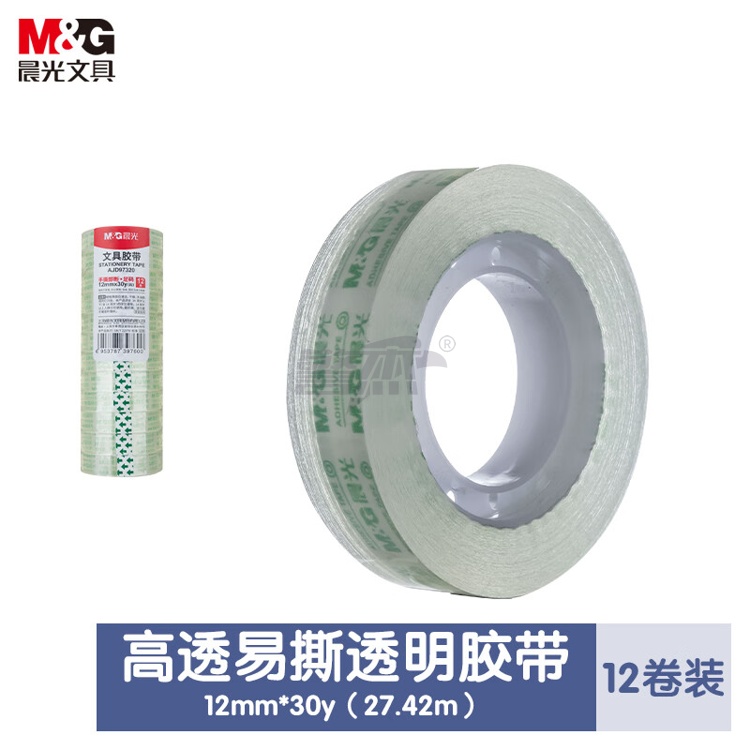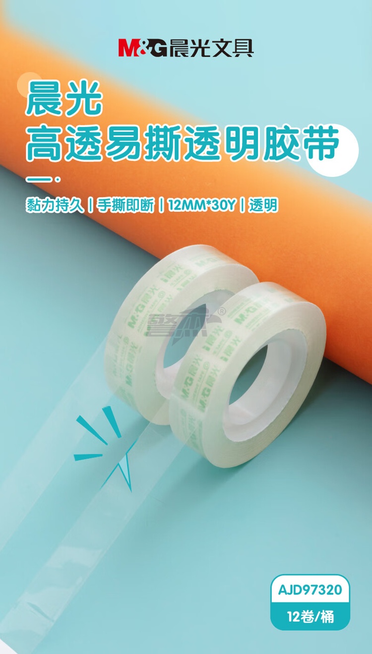 产品名称 : 晨光(M&G)文具透明胶带 高透易撕小胶带 学生手工胶布12mm30y(27.42米/卷) 12卷装AJD97320
