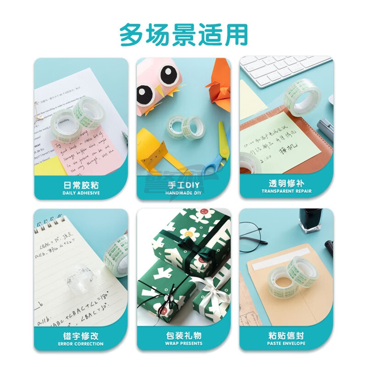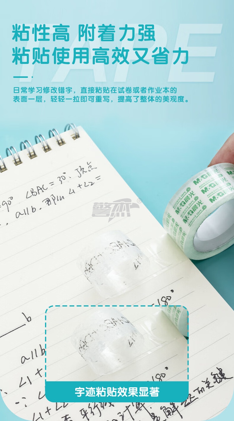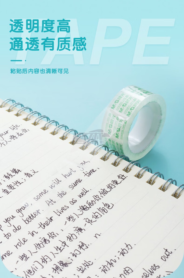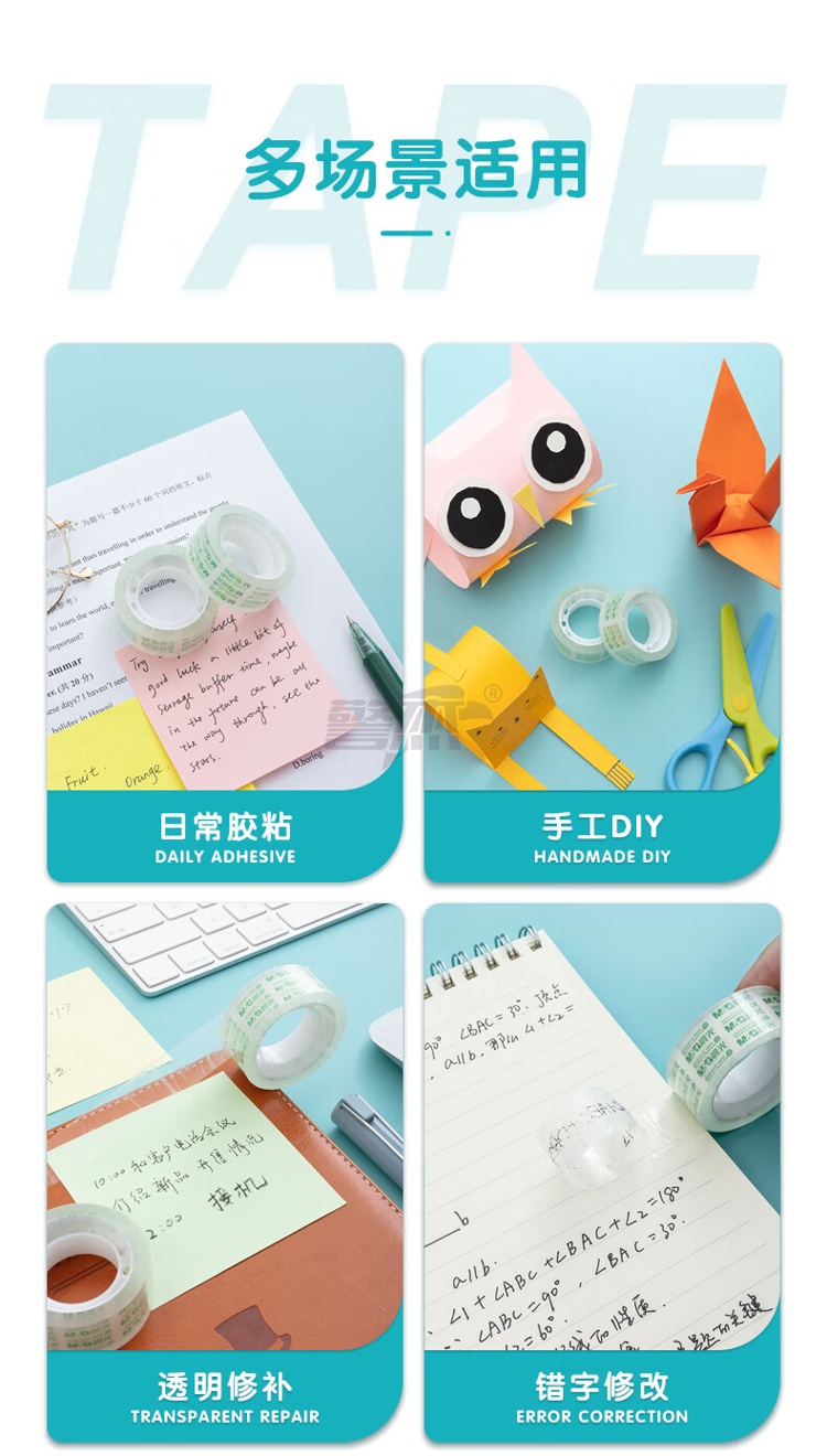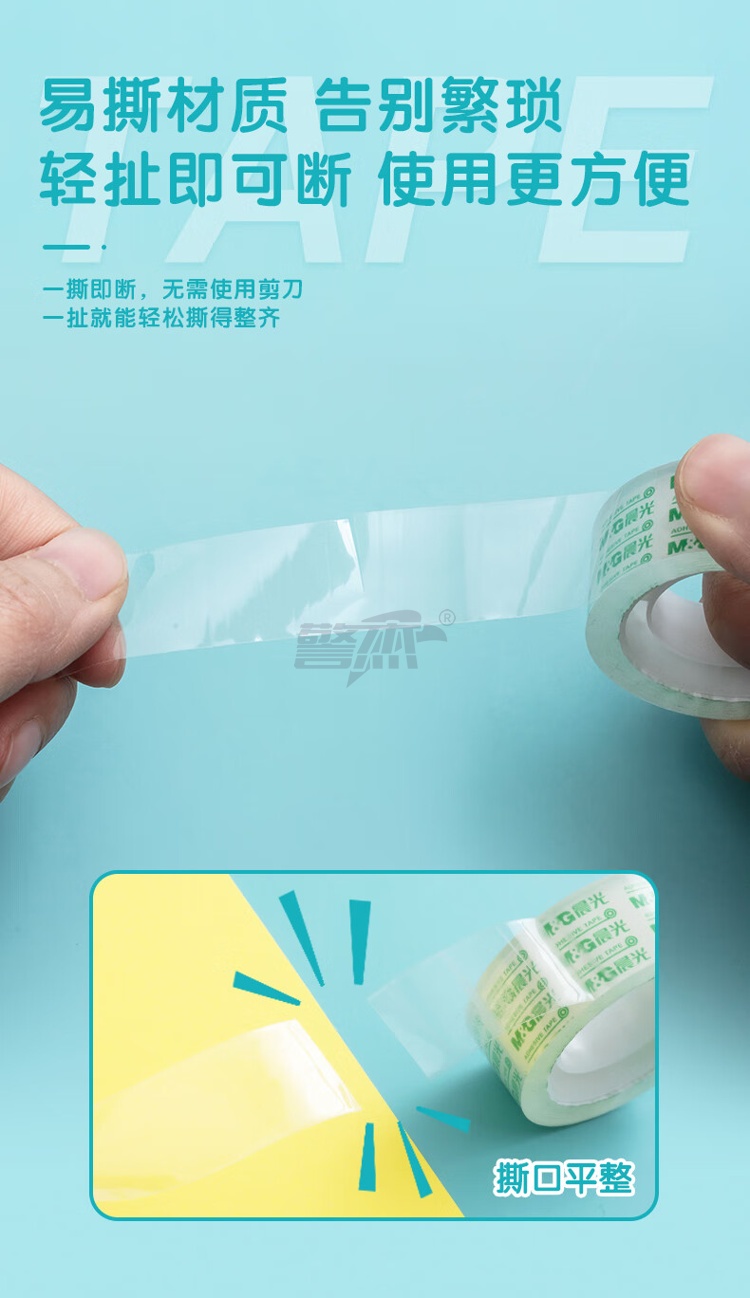 产品名称 : 晨光(M&G)文具透明胶带 高透易撕小胶带 学生手工胶布18mm*18y(16.5米/卷) 8卷装AJD97322