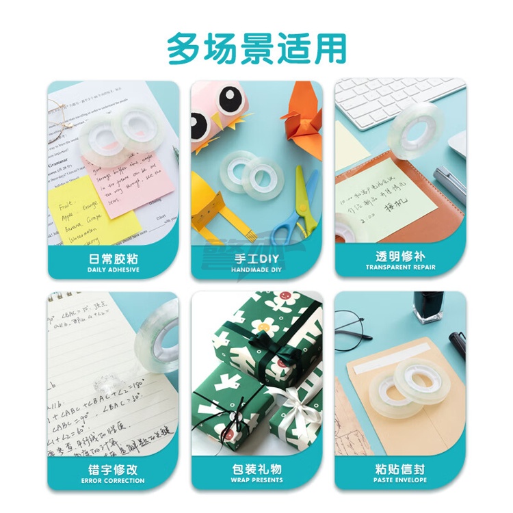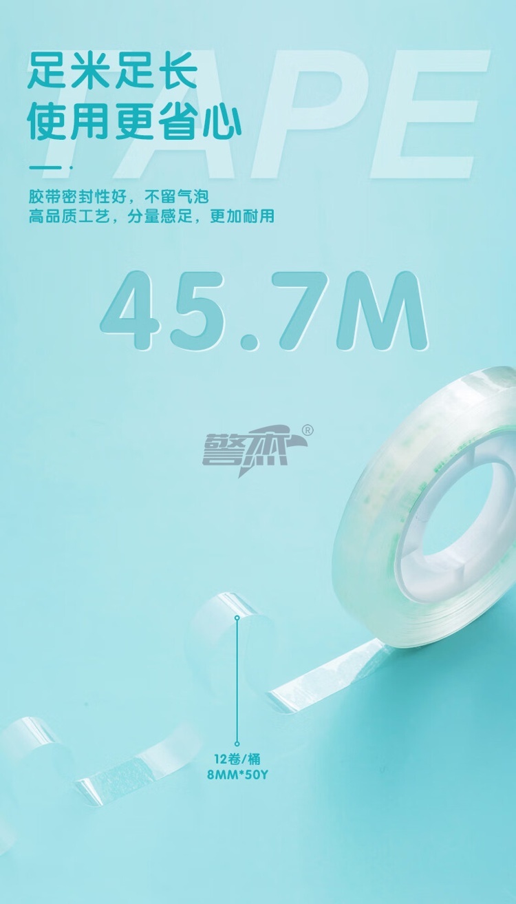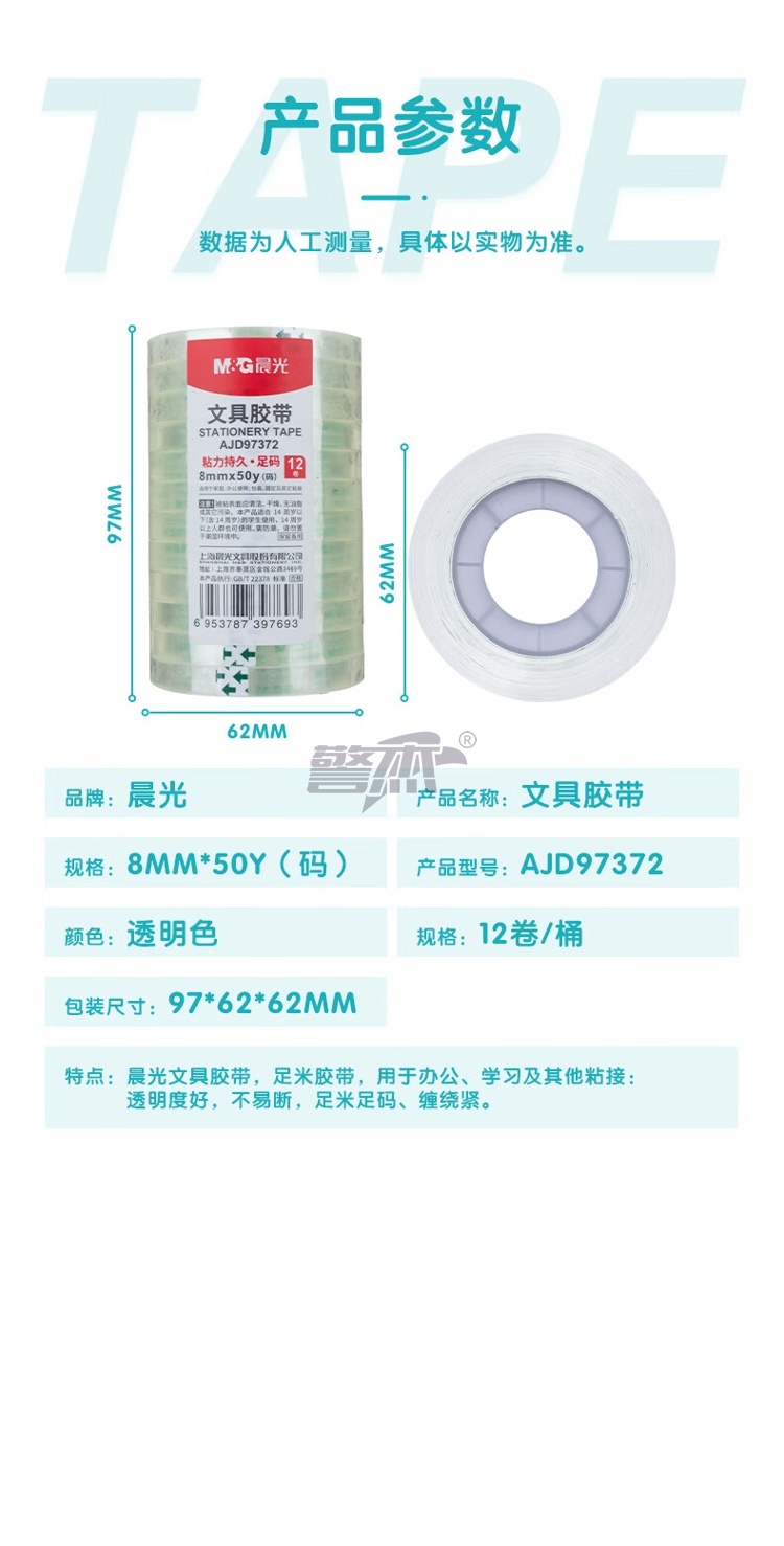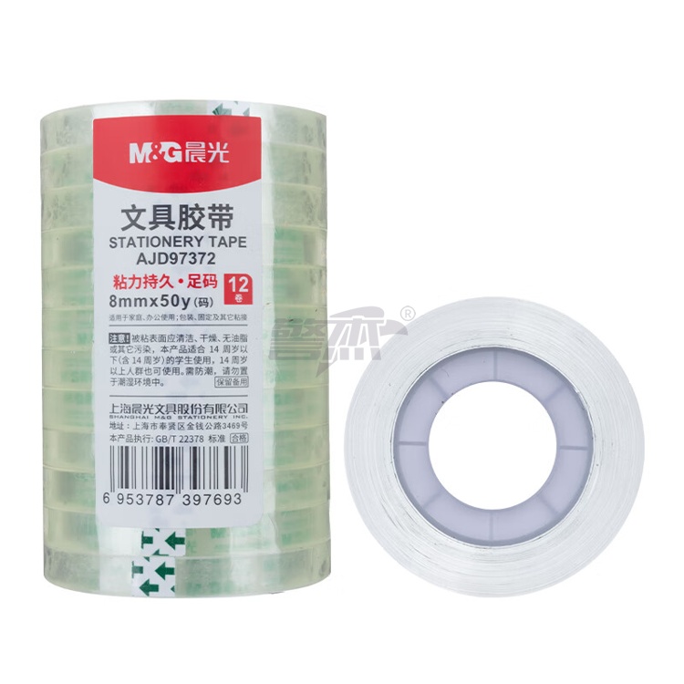 产品名称 : 晨光(M&G)文具透明胶带 高透易撕小胶带 学生手工胶布8mm*50y(45.7m/卷) 12卷装AJD97372