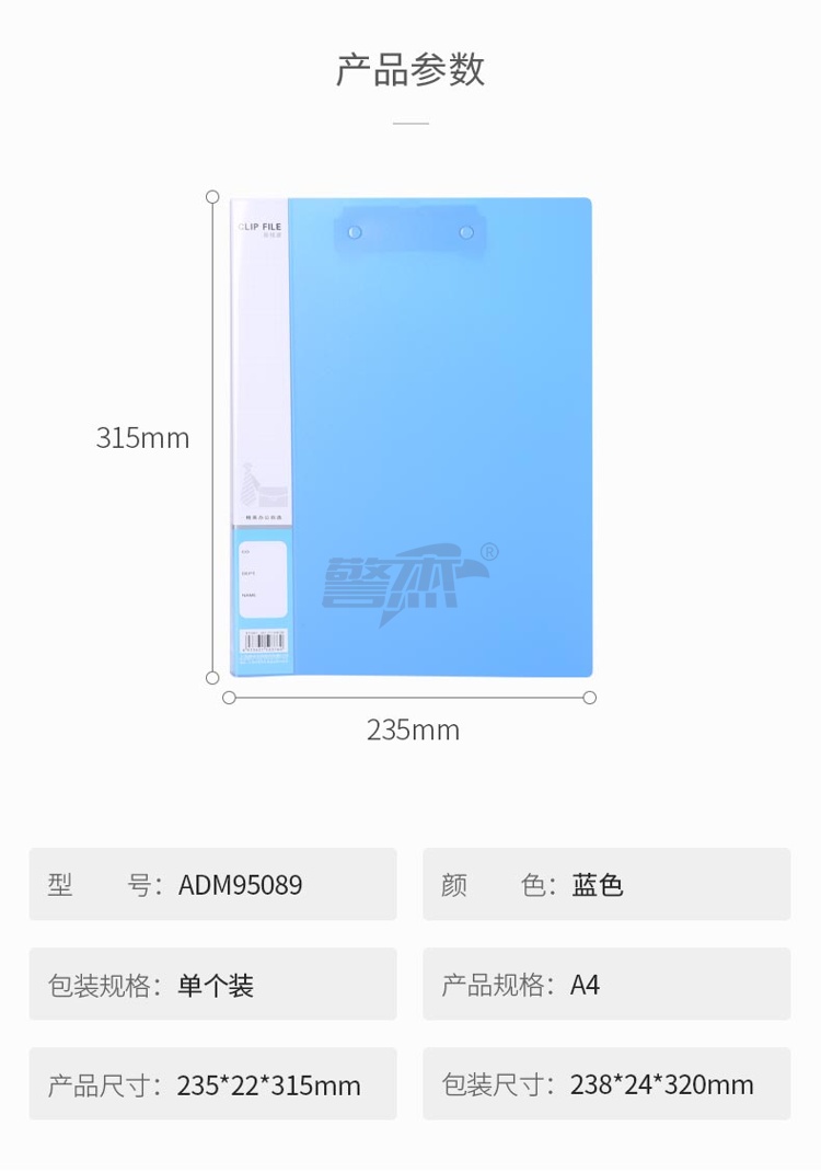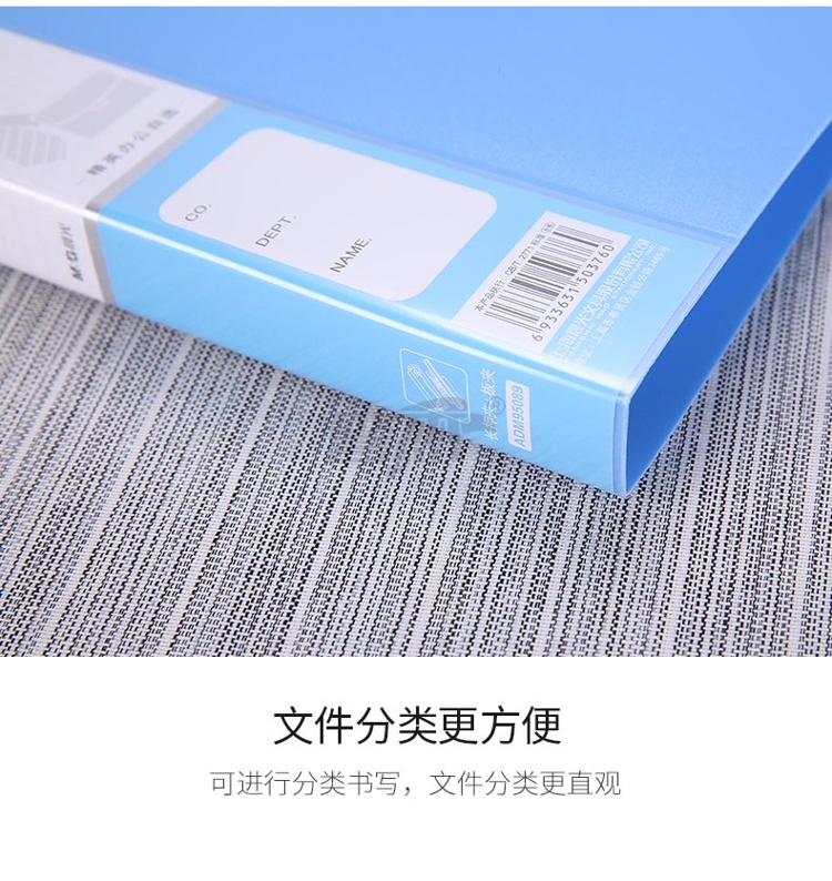 产品名称 : 晨光(M&G)文具A4蓝色长押夹加板夹 文件夹 新锐系列办公资料夹 单个装ADM95089