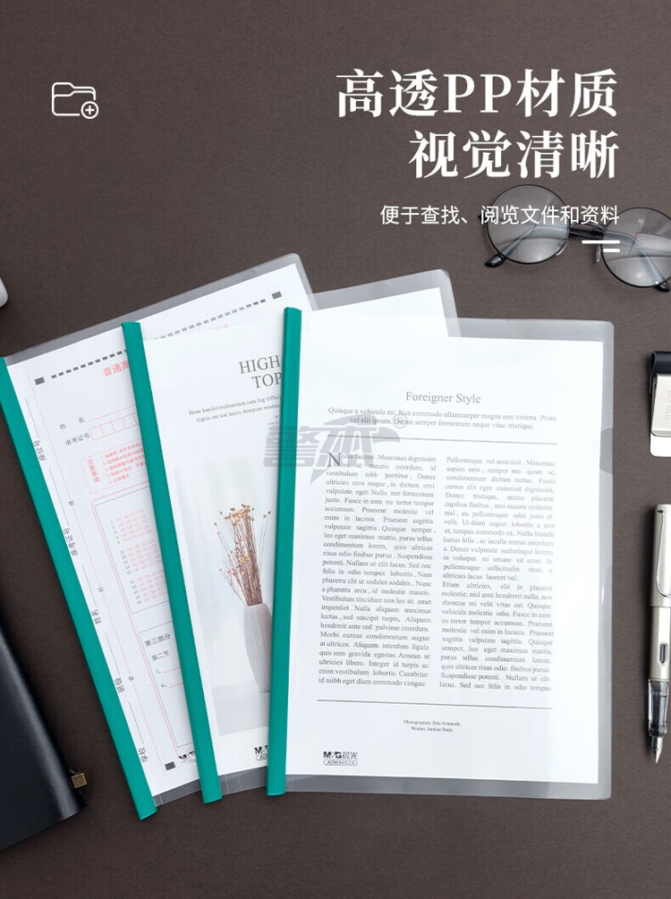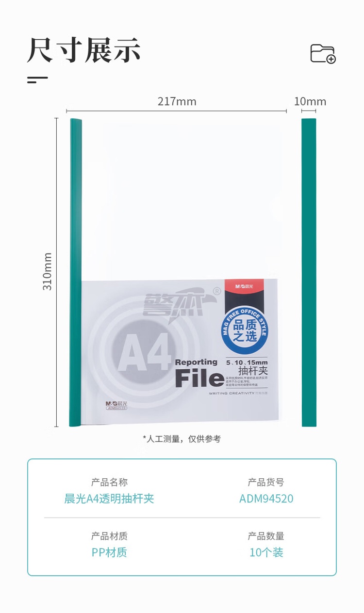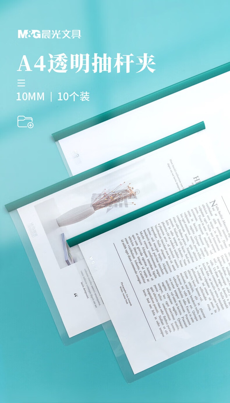 产品名称 : 晨光(M&G)文具10个装A4/10mm透明抽杆夹 办公报告夹拉杆夹学生考试收纳资料整理文件夹 颜色随机ADM94520