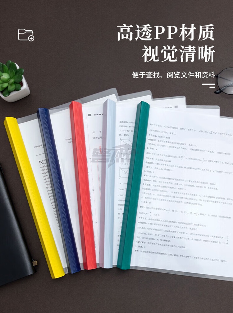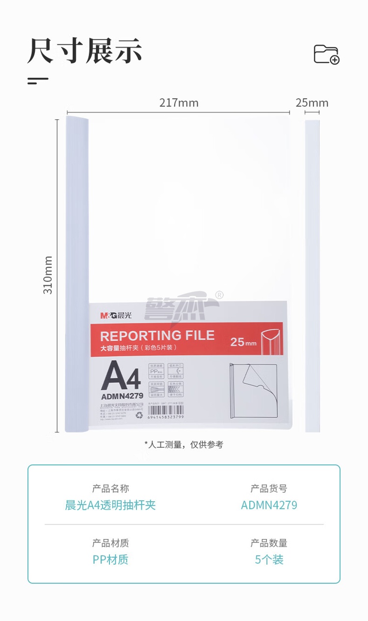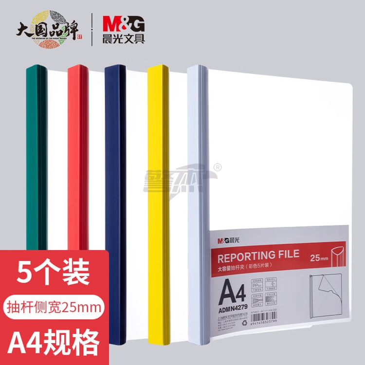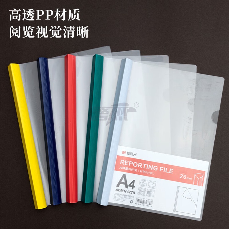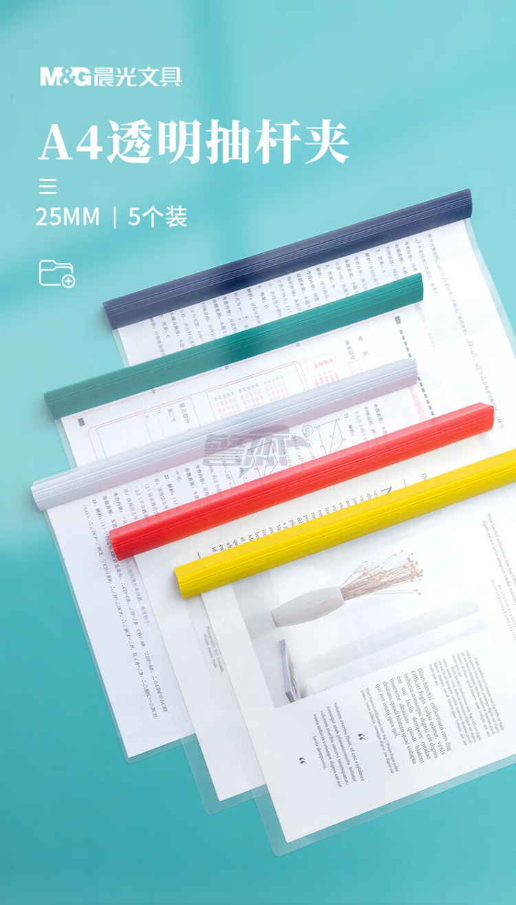 产品名称 : 晨光(M&G)文具A4/25mm透明抽杆夹 大容量办公报告夹拉杆夹 学生考试收纳资料整理文件夹 5个装ADMN4279
