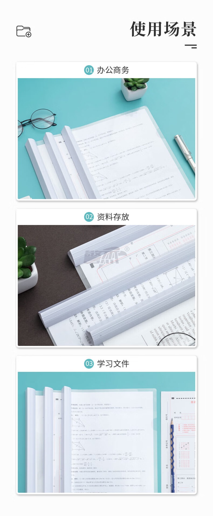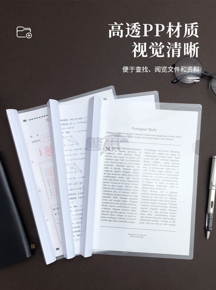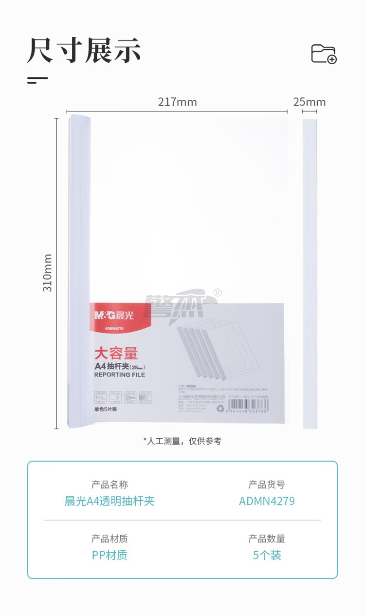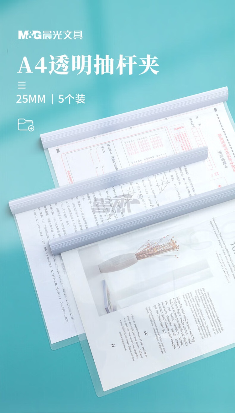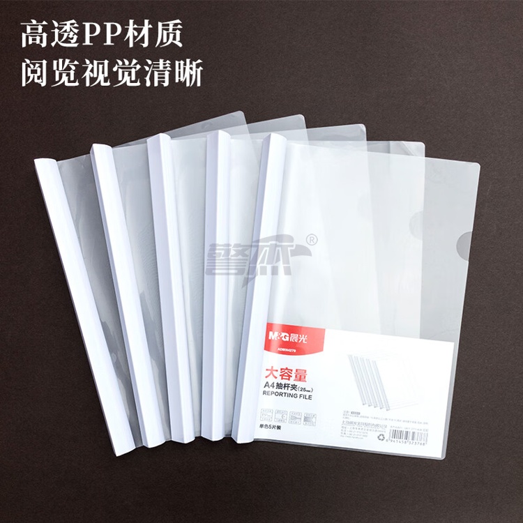 产品名称 : 晨光(M&G)文具5个装A4/25mm透明抽杆夹 大容量办公报告学生考试收纳拉杆夹 资料整理收纳文件夹ADMN4279I