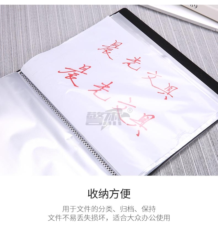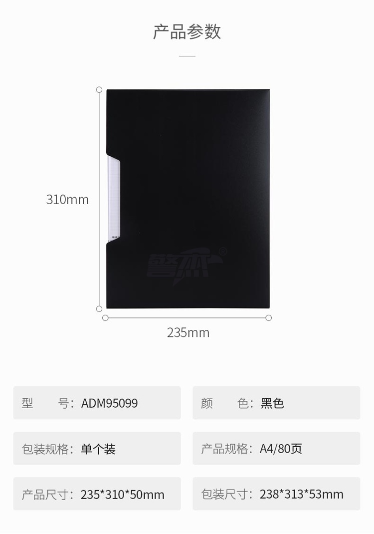 产品名称 : 晨光(M&G)文具A4/80页黑色资料册 办公文件册 新锐派防水文件插页袋文件夹 单个装ADM95099