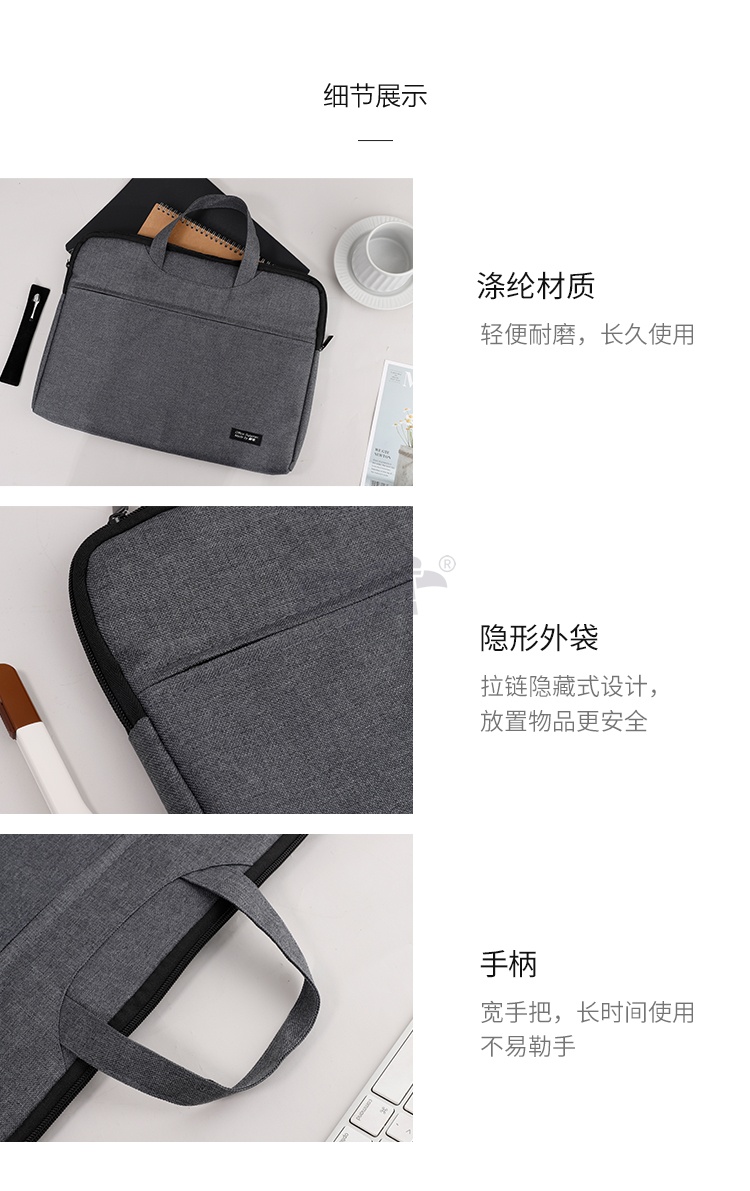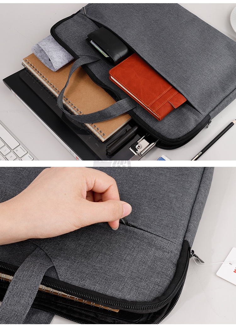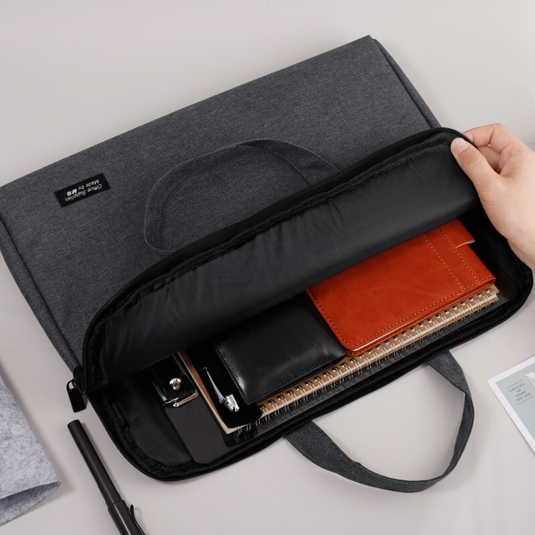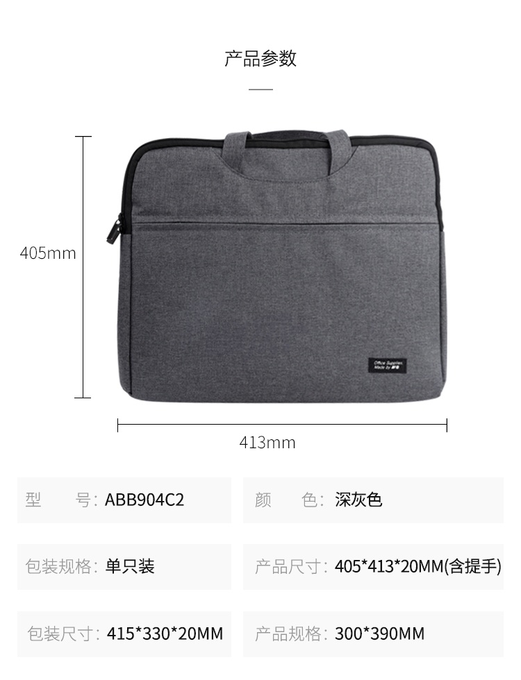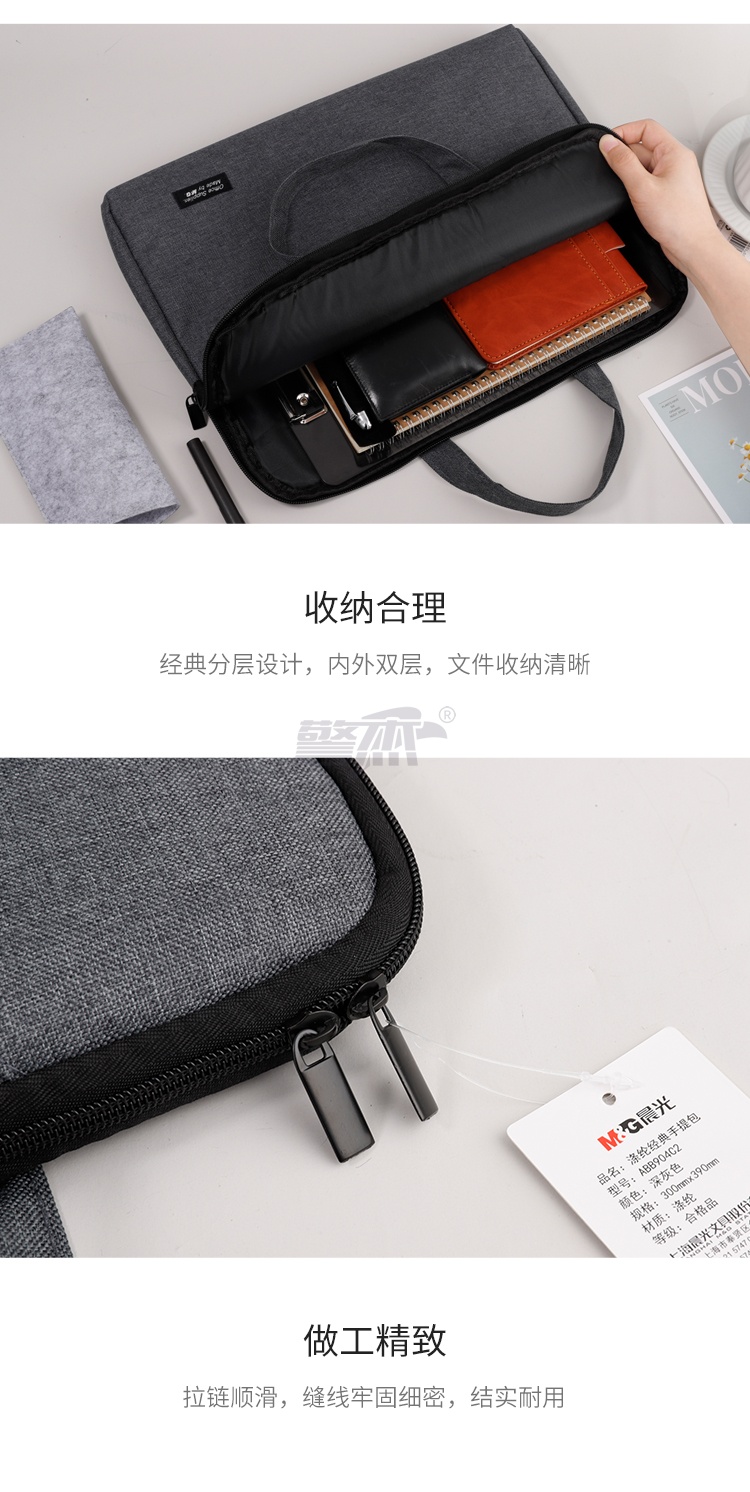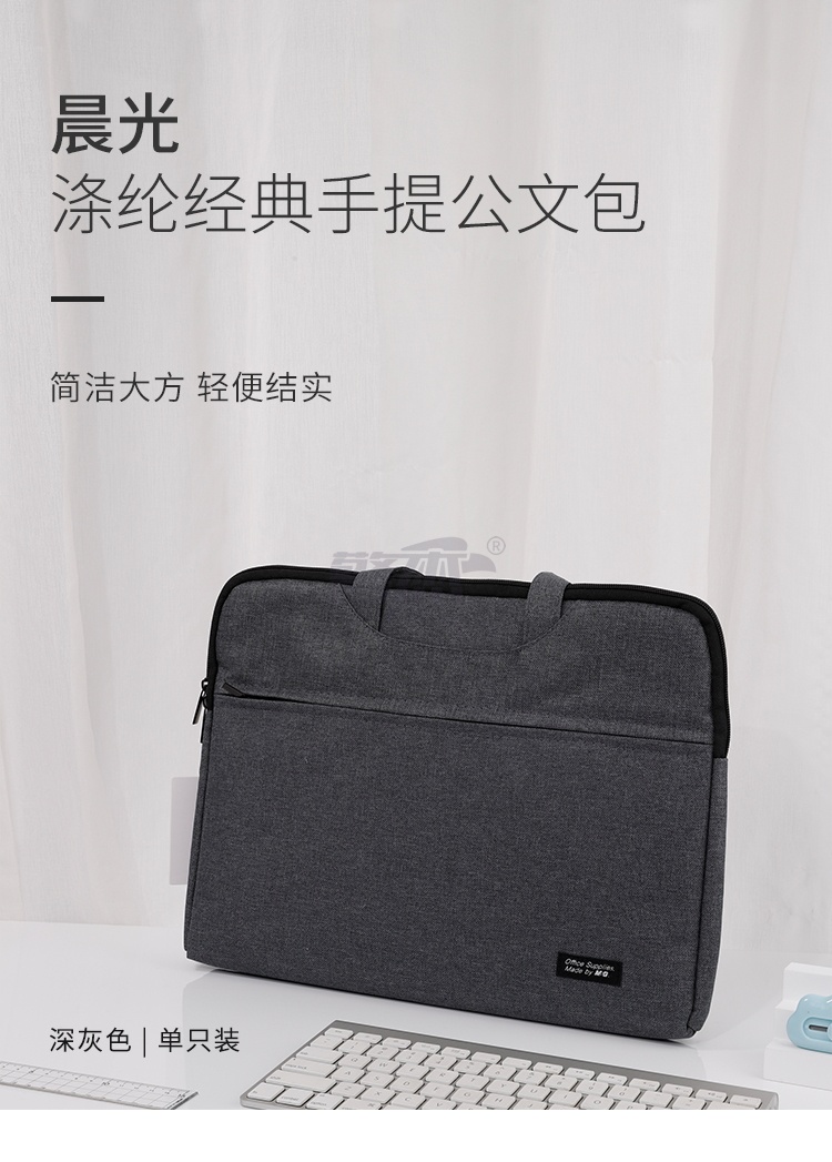 产品名称 : 晨光(M&G)文具深灰色办公手提会议包 横式双层事务包 涤纶经典商务拉链袋电脑公文包 单个装ABB904C219