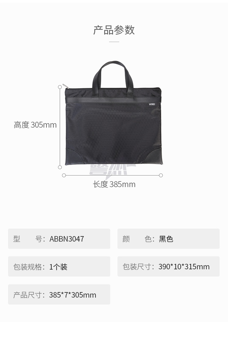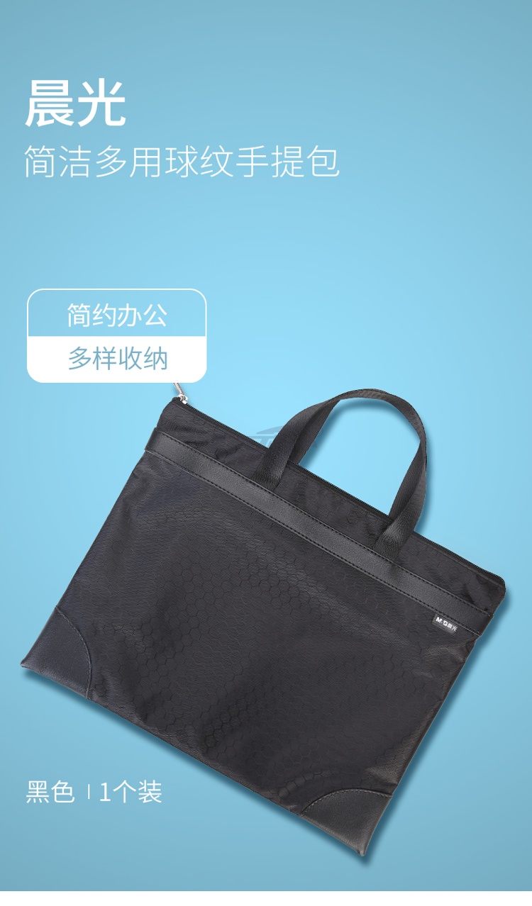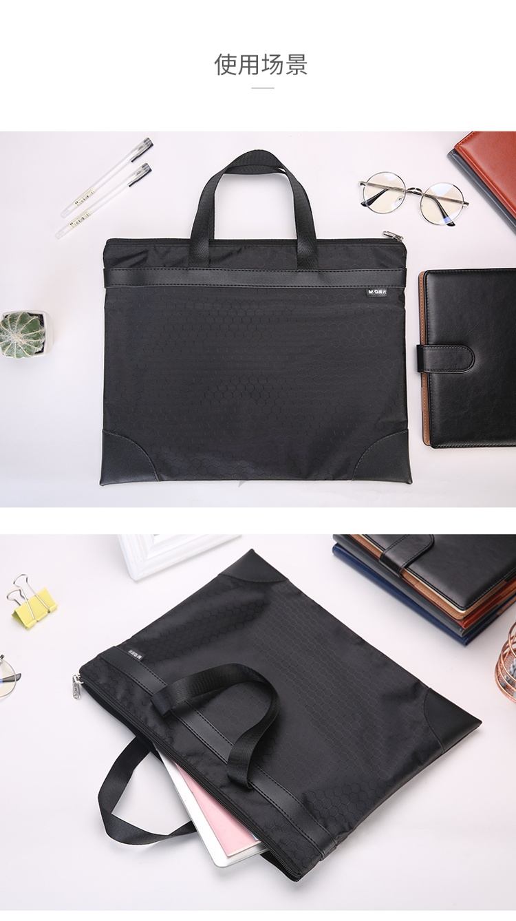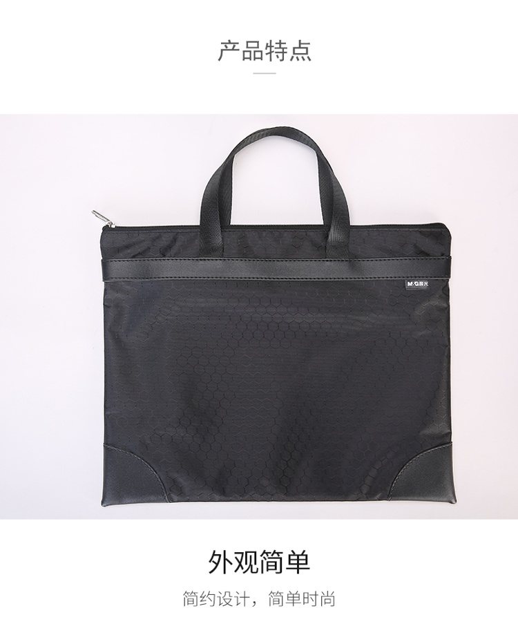 产品名称 : 晨光(M&G)文具A4黑色纹手提会议包 事务包 大容量商务公文拉链袋 资料袋文件袋 单个装ABBN3047