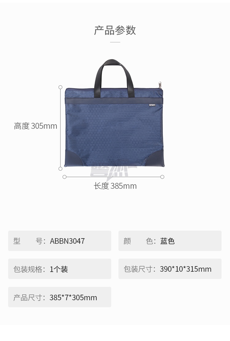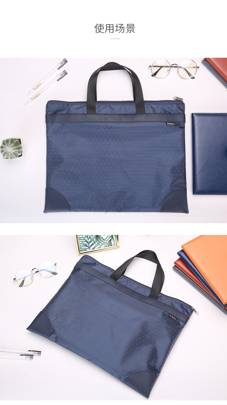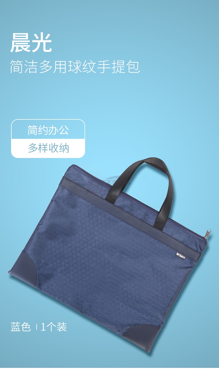 产品名称 : 晨光(M&G)文具A4蓝色纹手提会议包 事务包 大容量商务公文拉链袋 资料袋文件袋 单个装ABBN3047