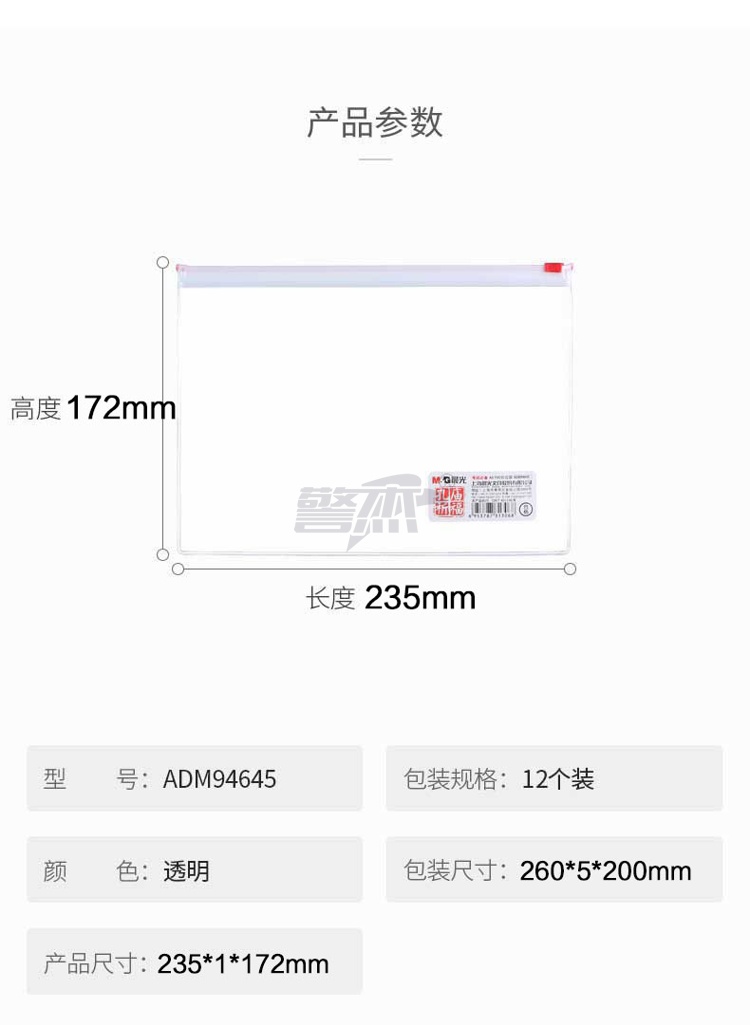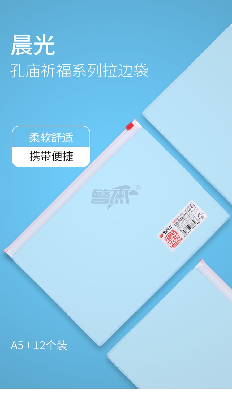 产品名称 : 晨光(M&G)文具A5透明拉边袋拉链袋 孔庙祈福系列 学生开学考试试卷资料整理文件袋 12个装ADM94645