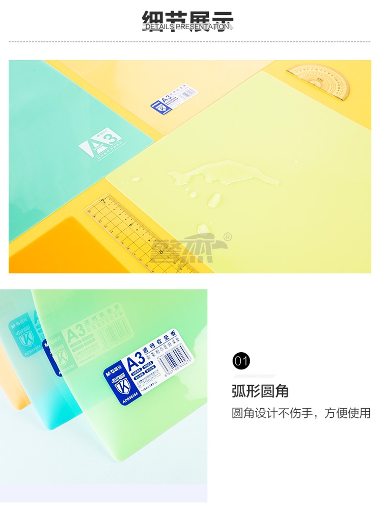 产品名称 : 晨光(M&G)文具A3软垫板 学生考试垫板 写字垫板复写板 10个装颜色随机ADB98384