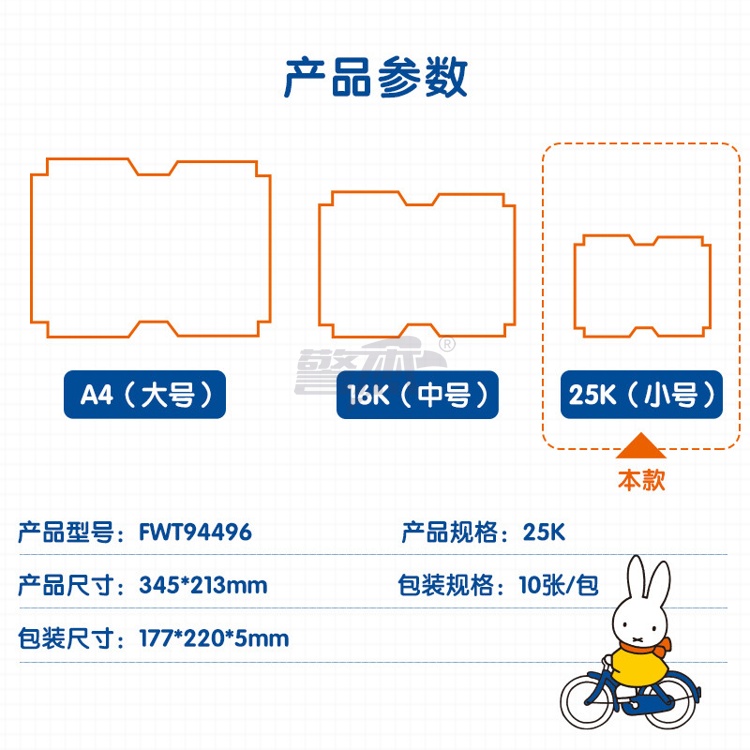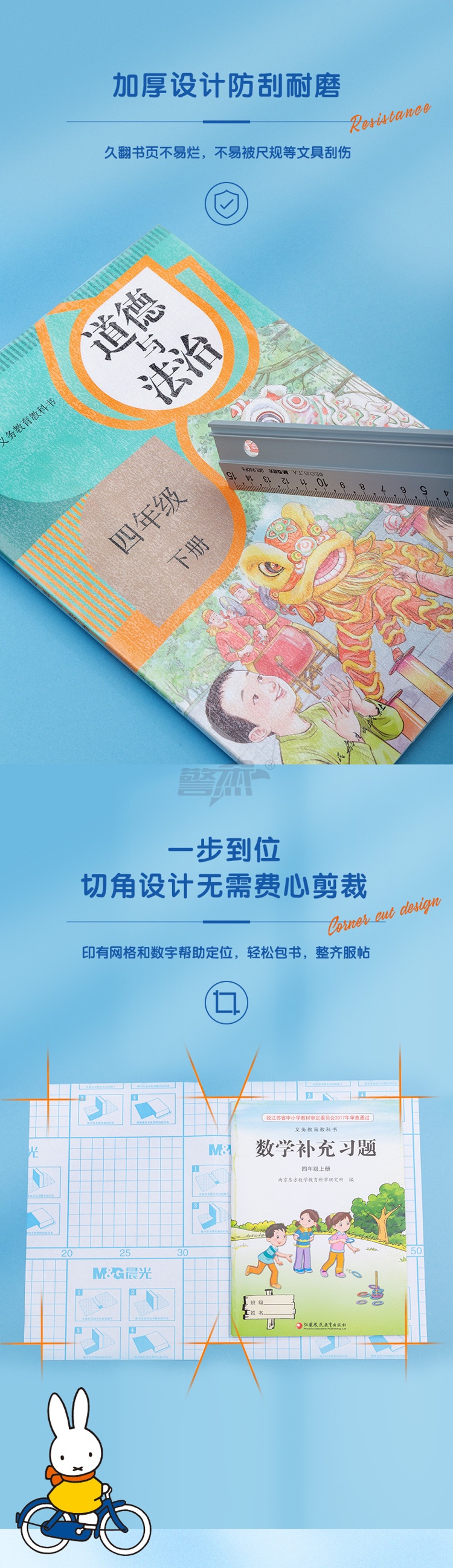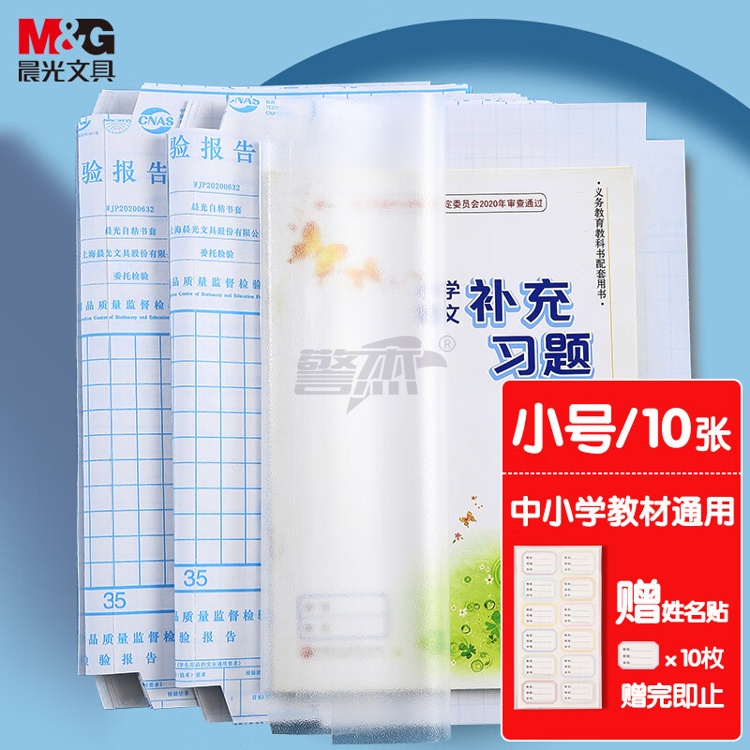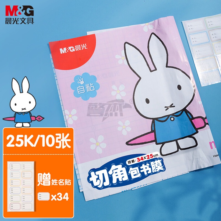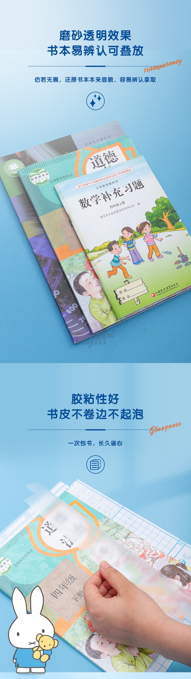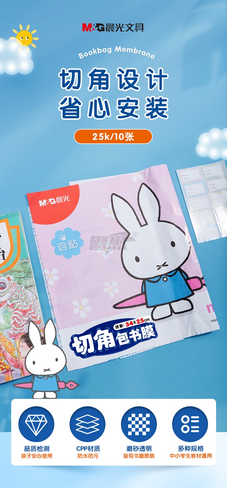 产品名称 : 晨光(M&G)文具25K/10张米菲透明磨砂切角包书皮 小号自粘包书膜 带姓名贴FWT94496