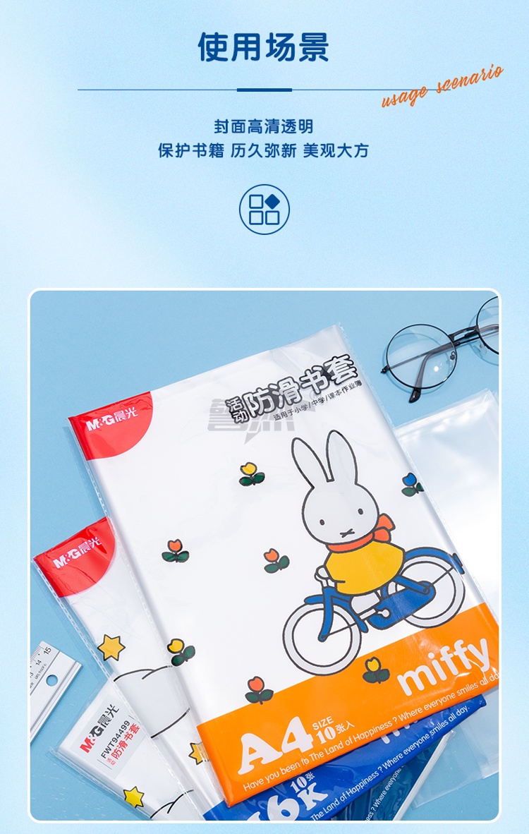 产品名称 : 晨光(M&G)文具16K/10张米菲透明防滑书套 小号加厚包书皮 PP材质开学文具(带姓名贴)FWTN2101
