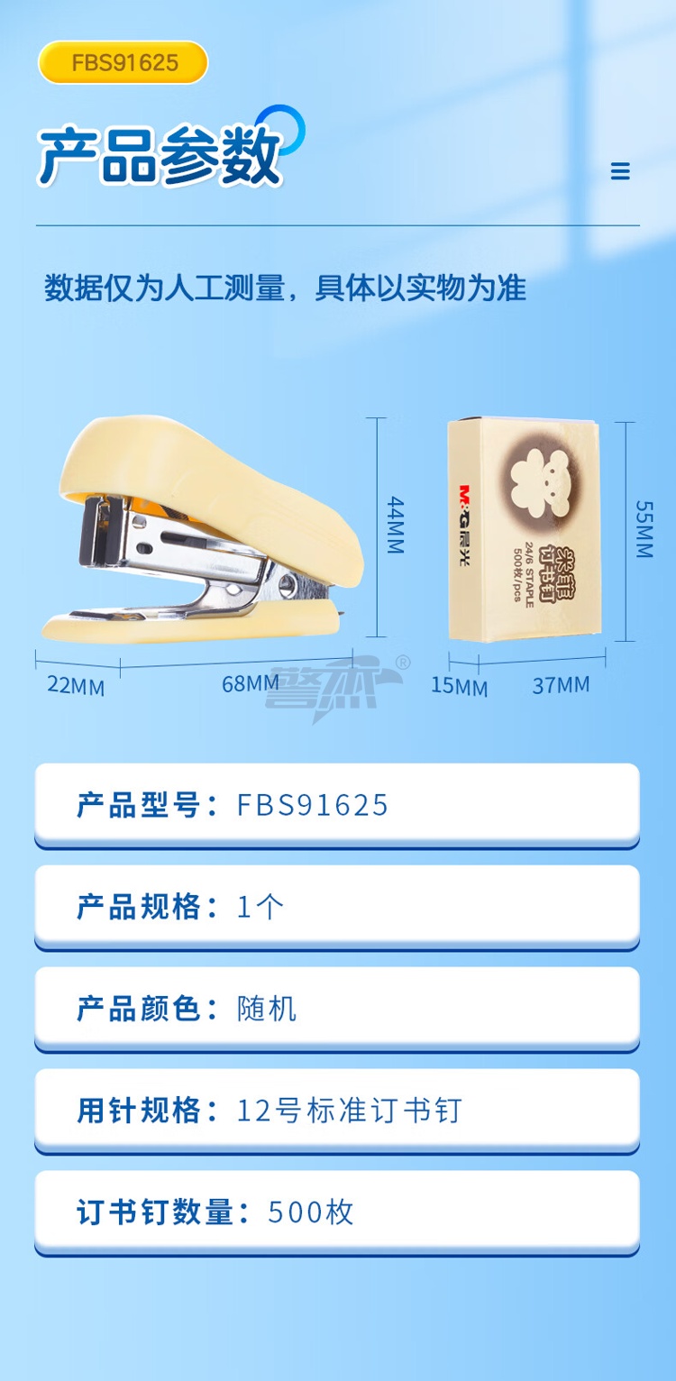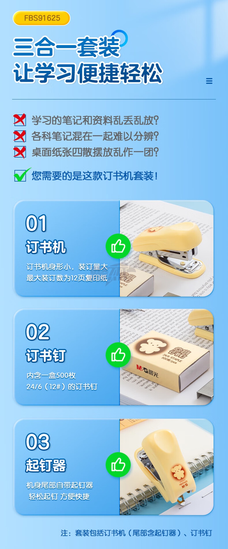 产品名称 : 晨光(M&G)文具12#订书机 小型便携米菲系列学生办公迷你订书器组合套装(订书器+订书钉) FBS91625