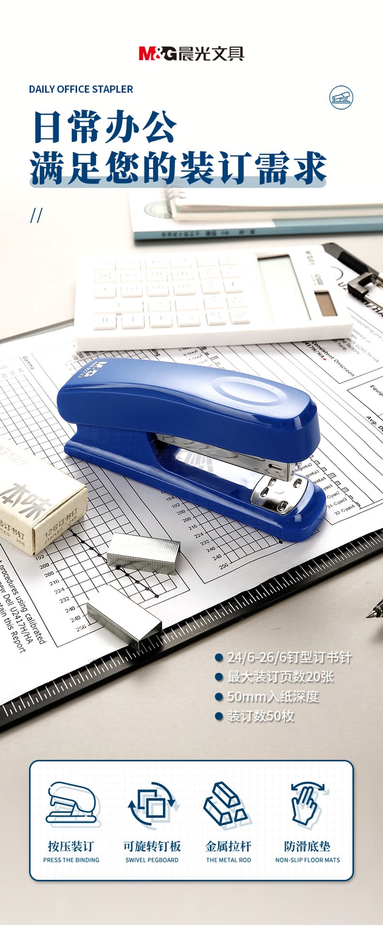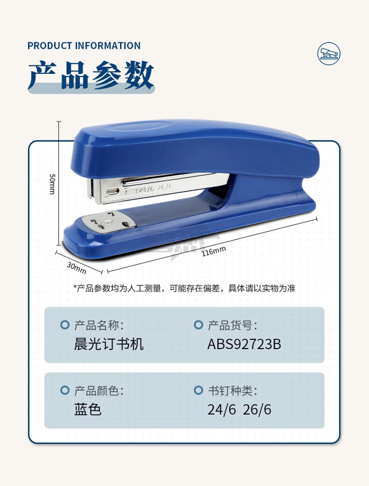 产品名称 : 晨光(M&G)文具12#订书机 耐用便携订书器 办公用品 蓝色单个装ABS92723