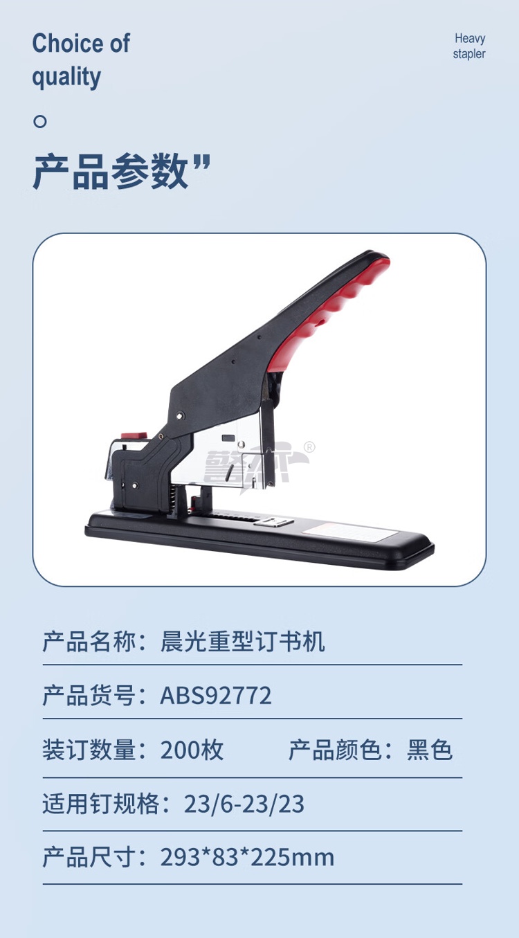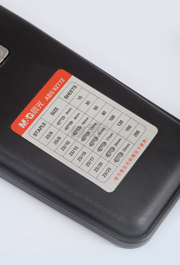 产品名称 : 晨光(M&G)文具200页重型订书机/订书器 适配23/6~23/23订书钉 办公用品 黑色 ABS92772