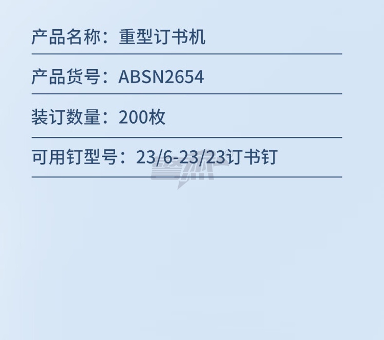 产品名称 : 晨光(M&G)文具200页重型订书机/订书器 适配23/6~23/23订书钉 办公用品 单个装ABSN2654