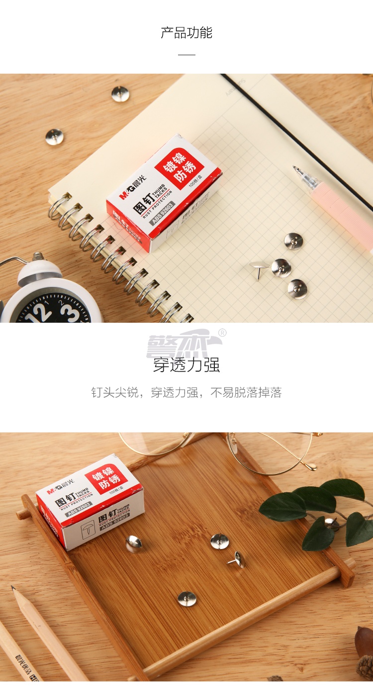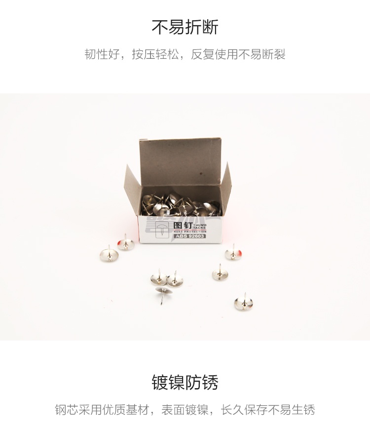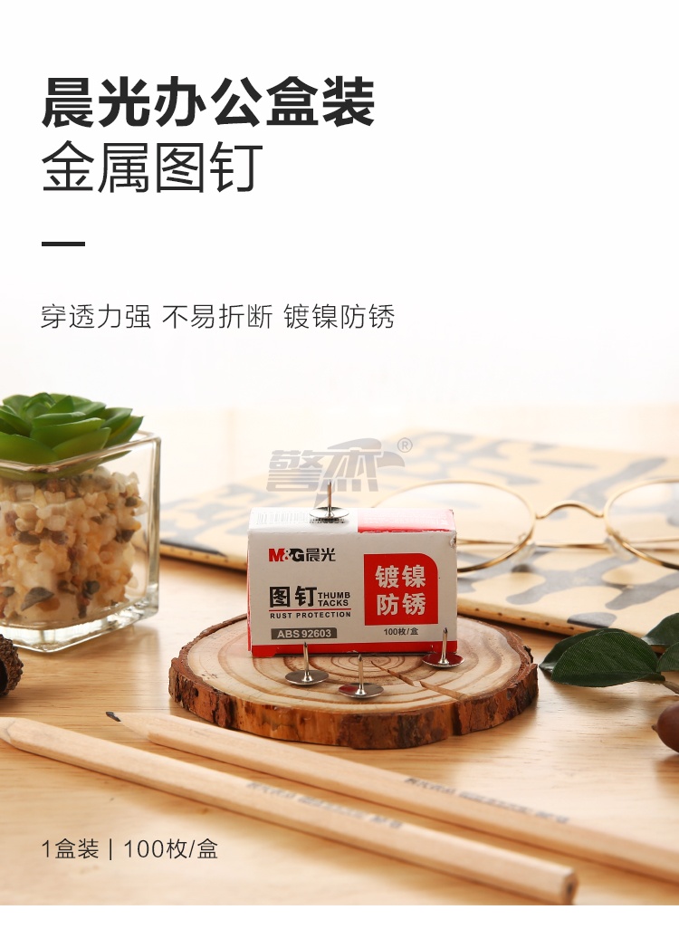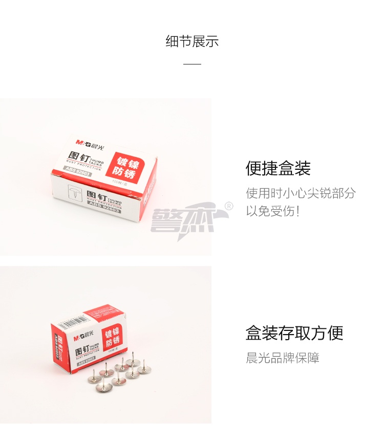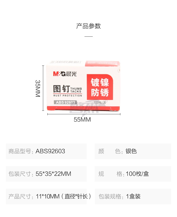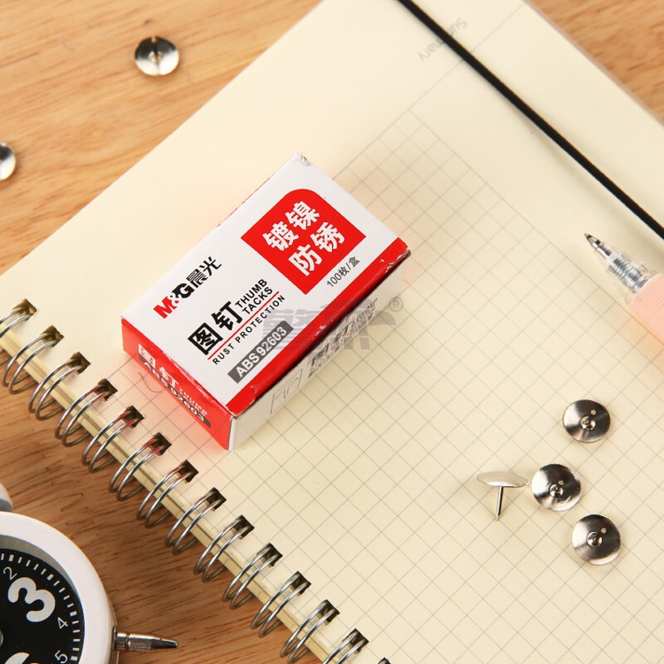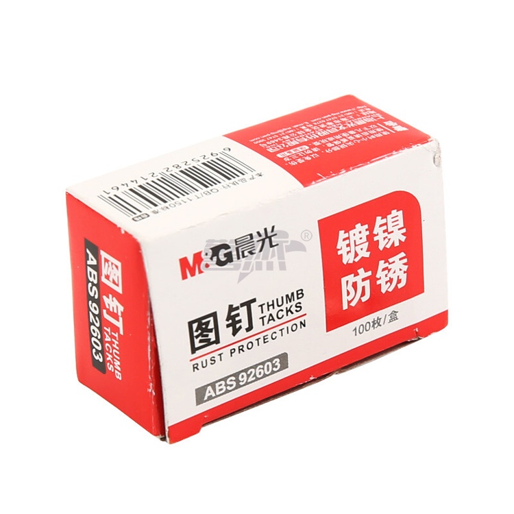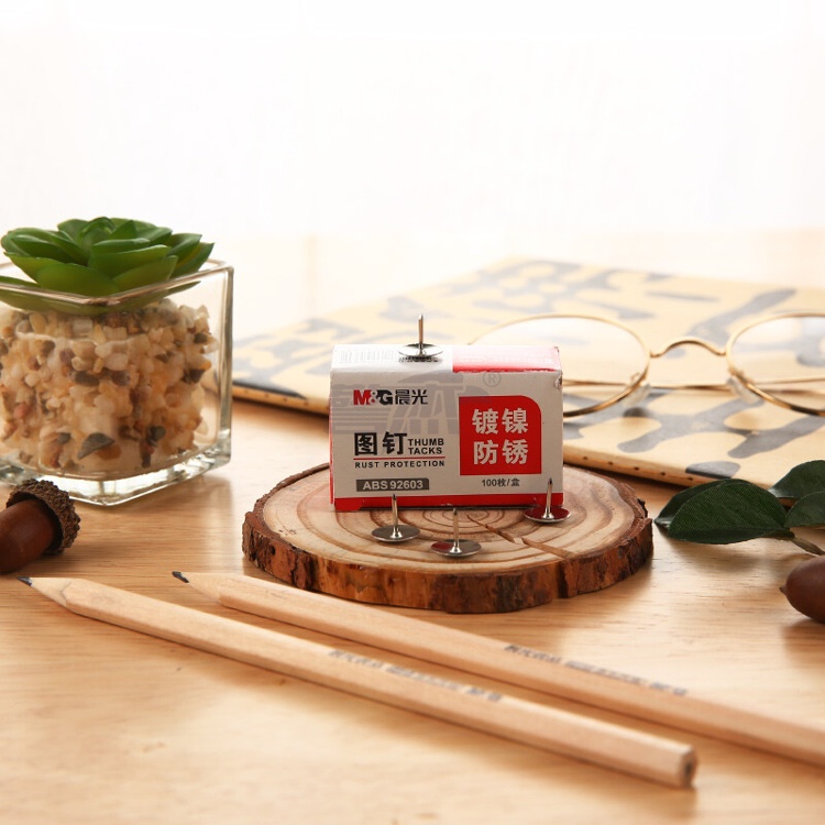 产品名称 : 晨光(M&G)文具镀镍图钉 软木板按钉 办公用品工字钉 照片钉 100枚/10盒ABS92603
