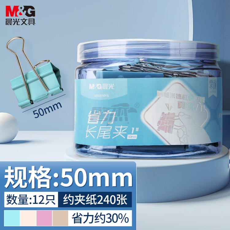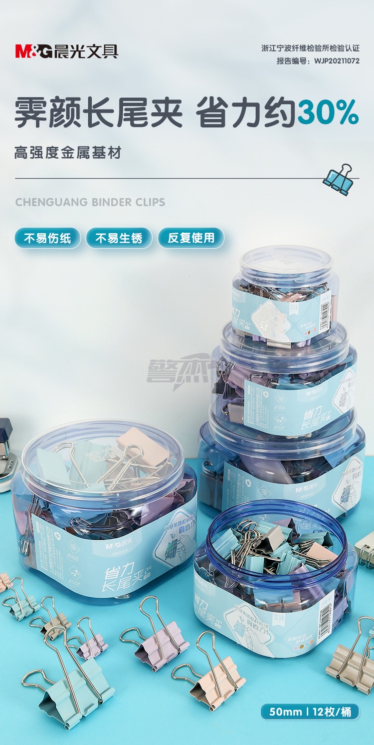 产品名称 : 晨光(M&G)文具12只50mm省力长尾夹票夹 1#彩色金属燕尾夹 莫兰迪系列票据夹子 办公用品ABS916Y5