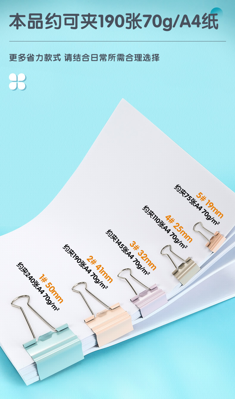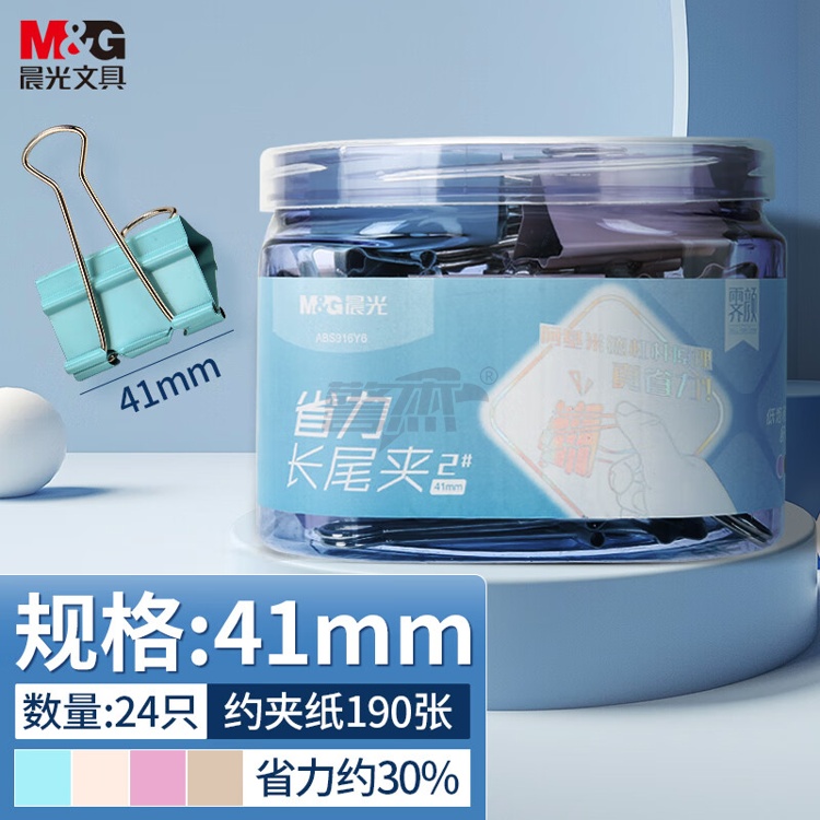 产品名称 : 晨光(M&G)文具24只41mm省力长尾夹票夹 2#彩色金属燕尾夹 莫兰迪系列票据夹子 办公用品ABS916Y6