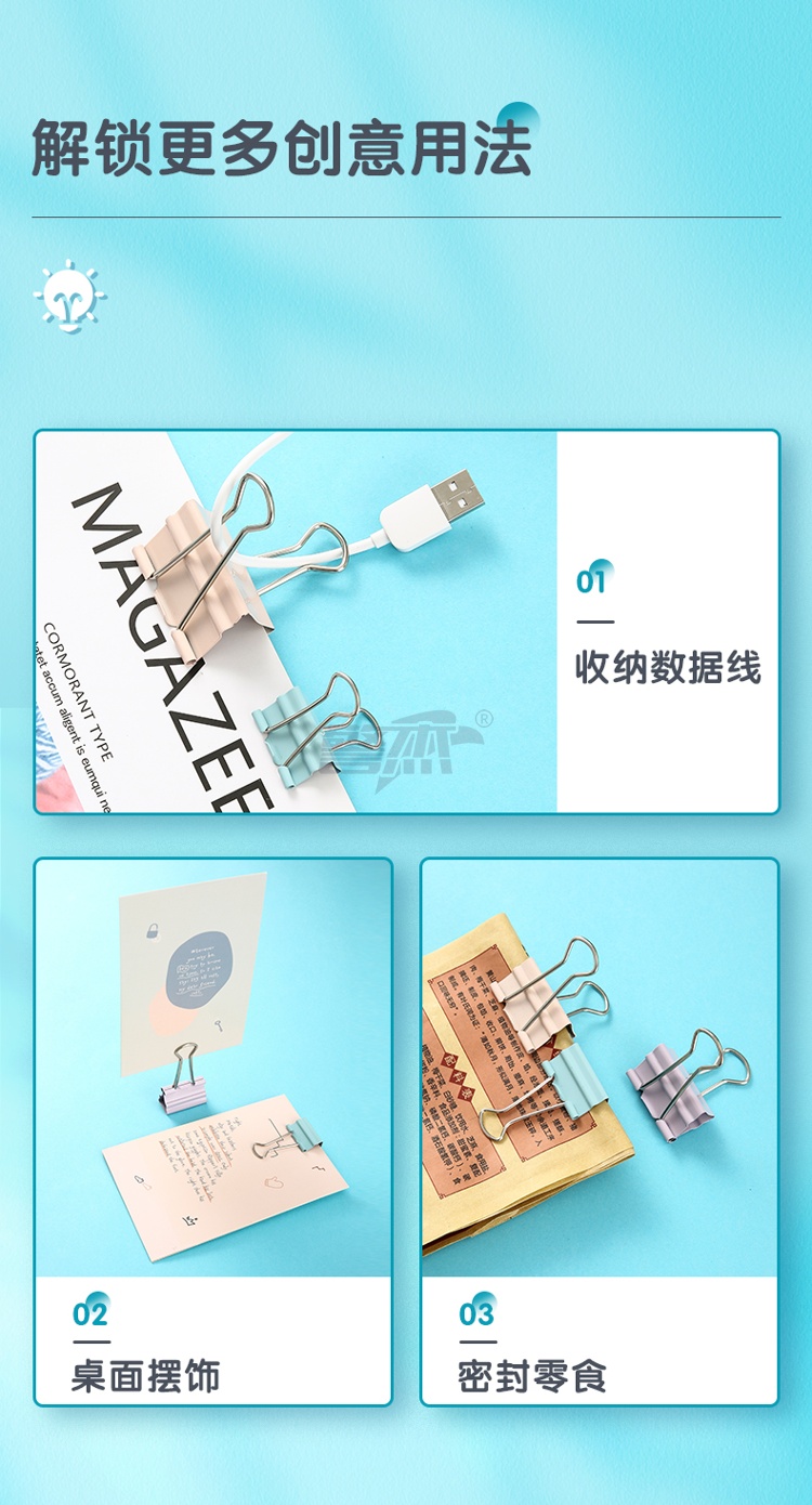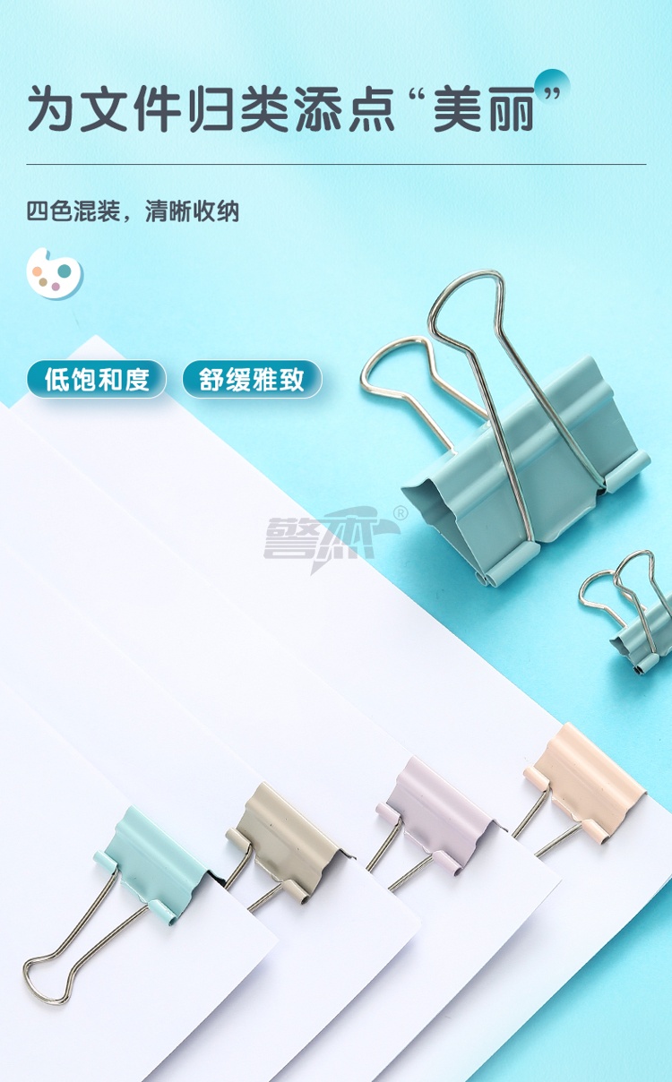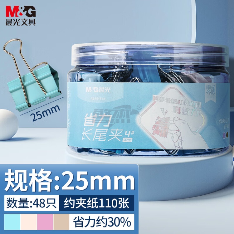产品名称 : 晨光(M&G)文具48只25mm省力长尾夹票夹 4#彩色金属燕尾夹 莫兰迪系列票据夹子 办公用品ABS916Y8