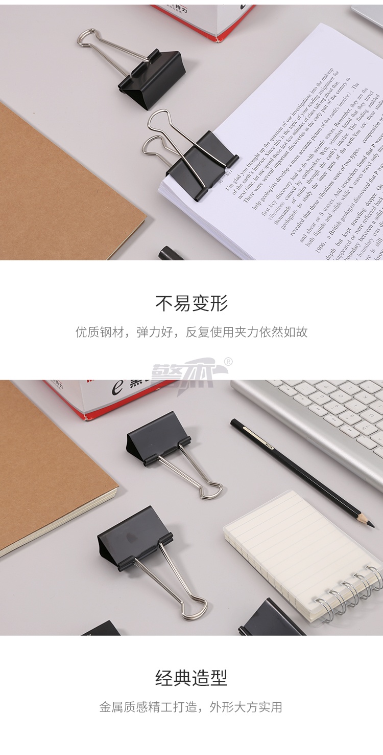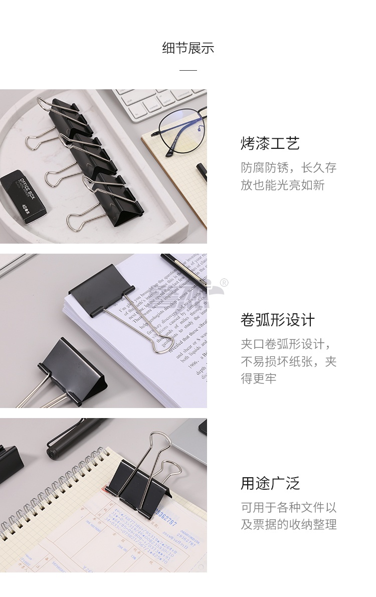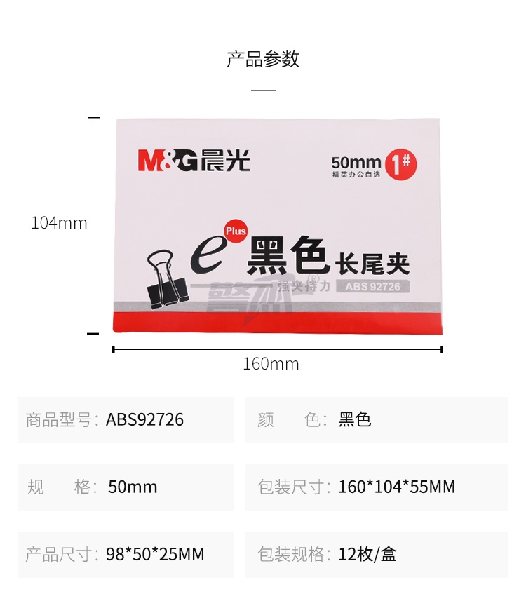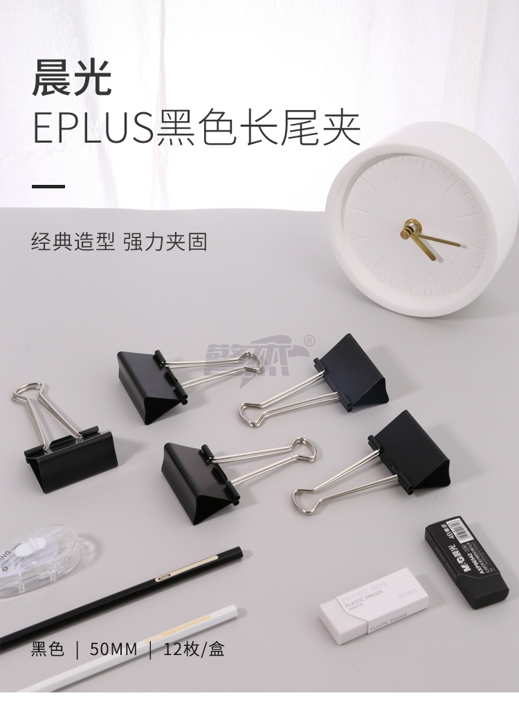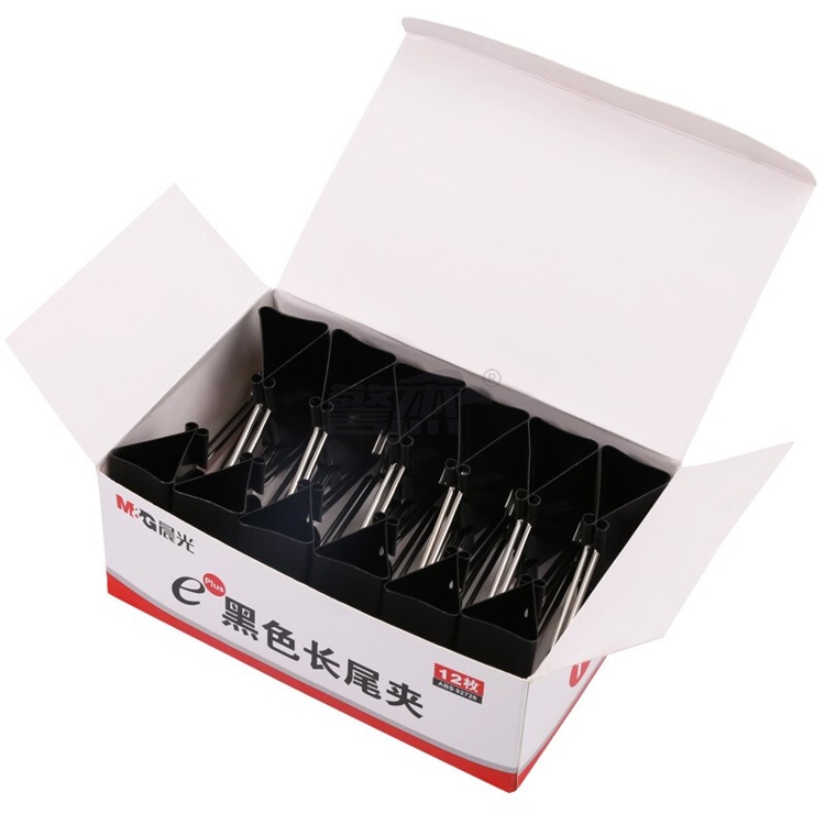 产品名称 : 晨光(M&G)文具1#50mm 12只/盒 黑色长尾夹 大号金属票据夹 Eplus系列办公燕尾夹 ABS92726